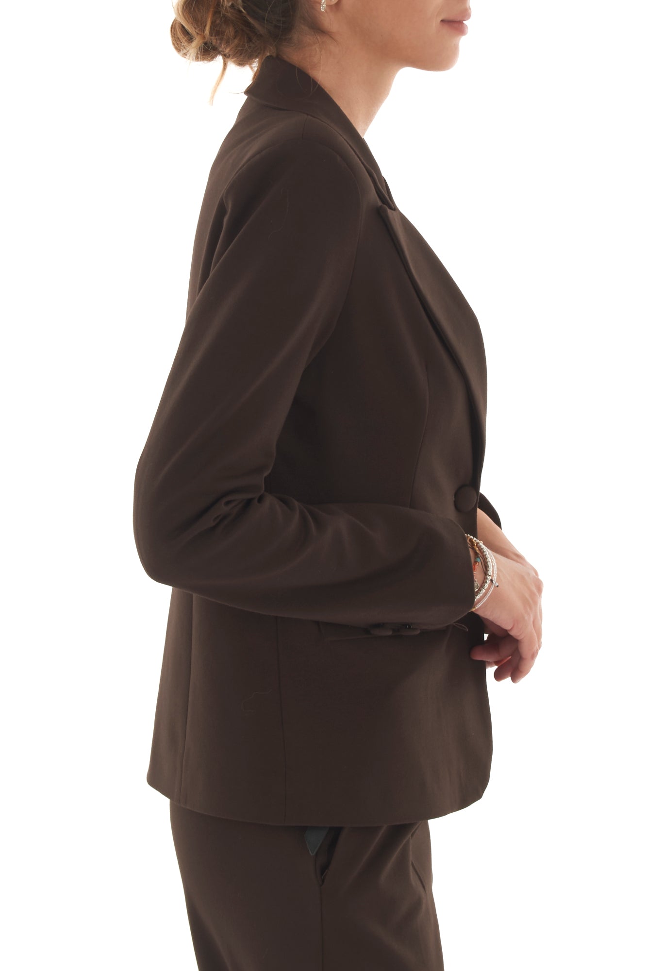 Giacca sfiancata monopetto elegante e versatile, perfetta per valorizzare la silhouette femminile. Realizzata con materiali di alta qualità, offre comfort e stile per ogni occasione, dall'ufficio a eventi speciali. Un capo intramontabile che aggiunge un tocco raffinato al tuo look.