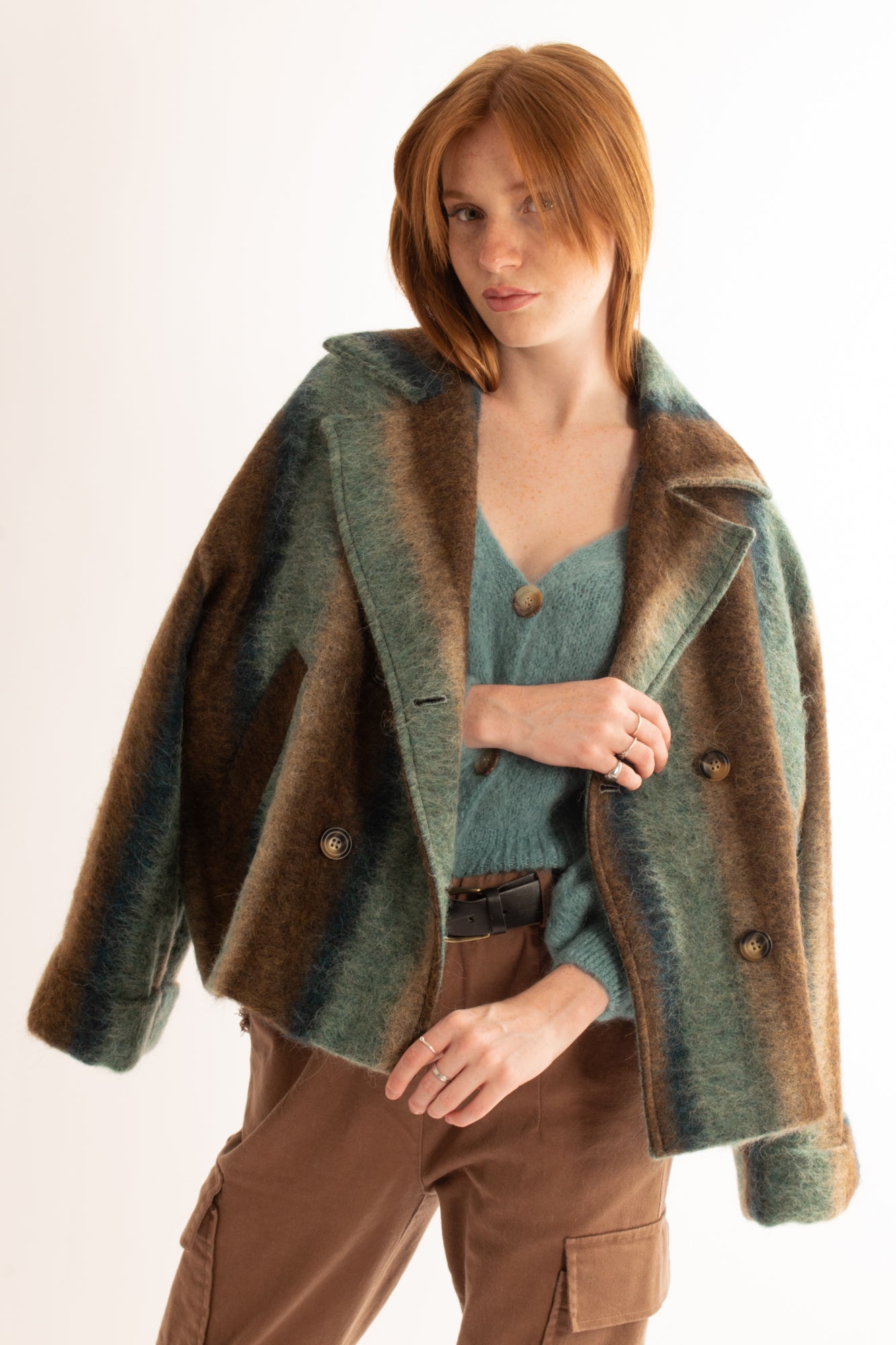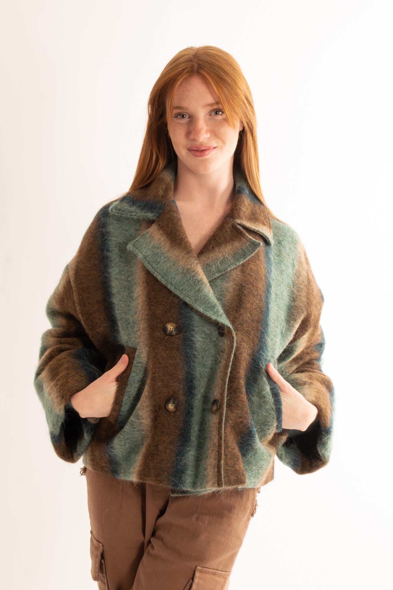 Il giaccone dal look moderno è realizzato in tessuto resistente con doppio petto a quadri. Questa caratteristica gli conferisce un aspetto sportivo e trasmette un'immagine di forza ed eleganza. Un capo di abbigliamento che non può mancare nel guardaroba maschile.