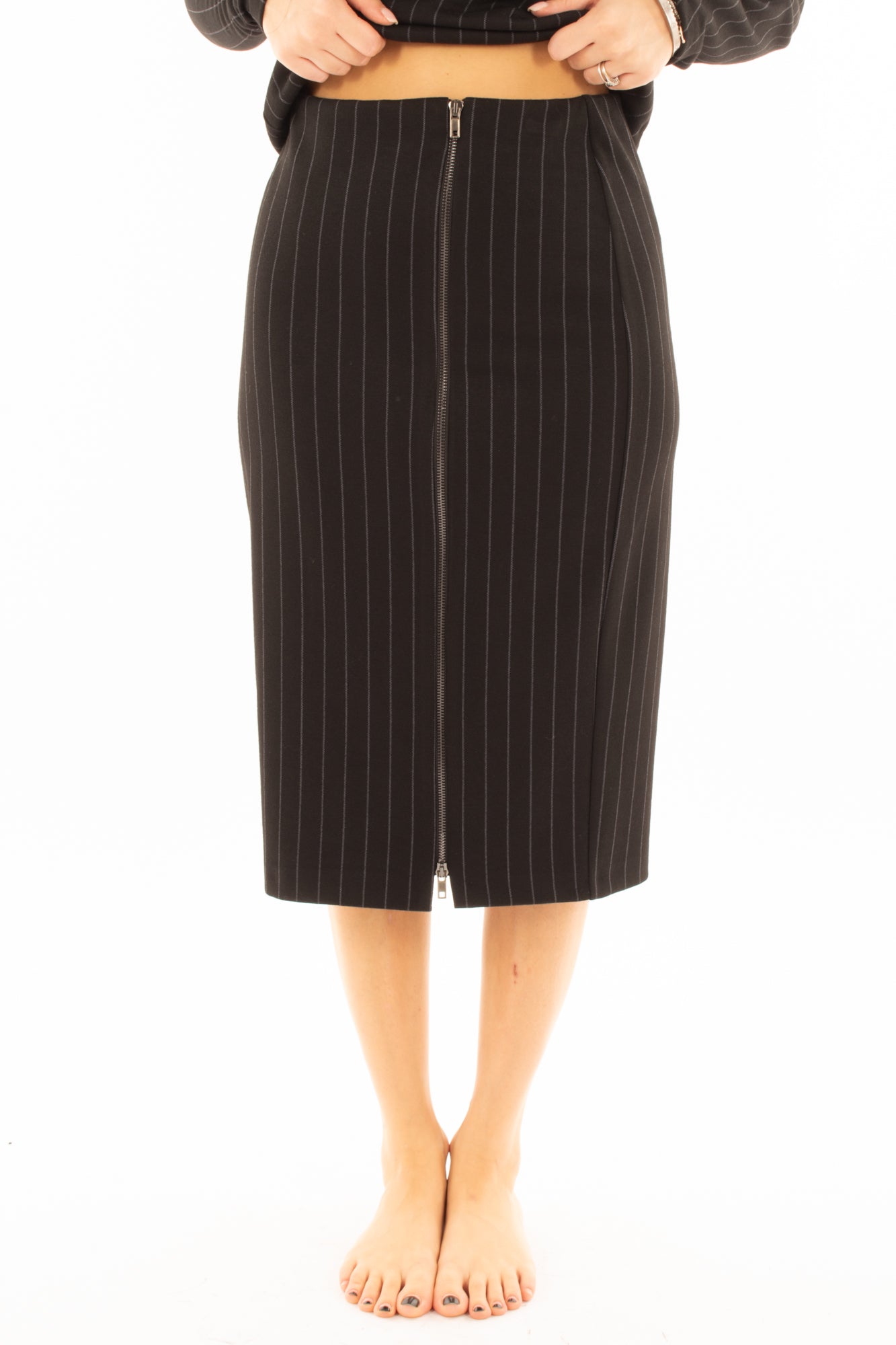 Scopri un look moderno ed elegante con questa gonna gessata di 3/4. Realizzata in tessuto gessato di alta qualità, è dotata di una zip di lato per rendere il prodotto ancora più pratico da indossare. Questo modello sottolinea perfettamente la tua silhouette in modo elegante.