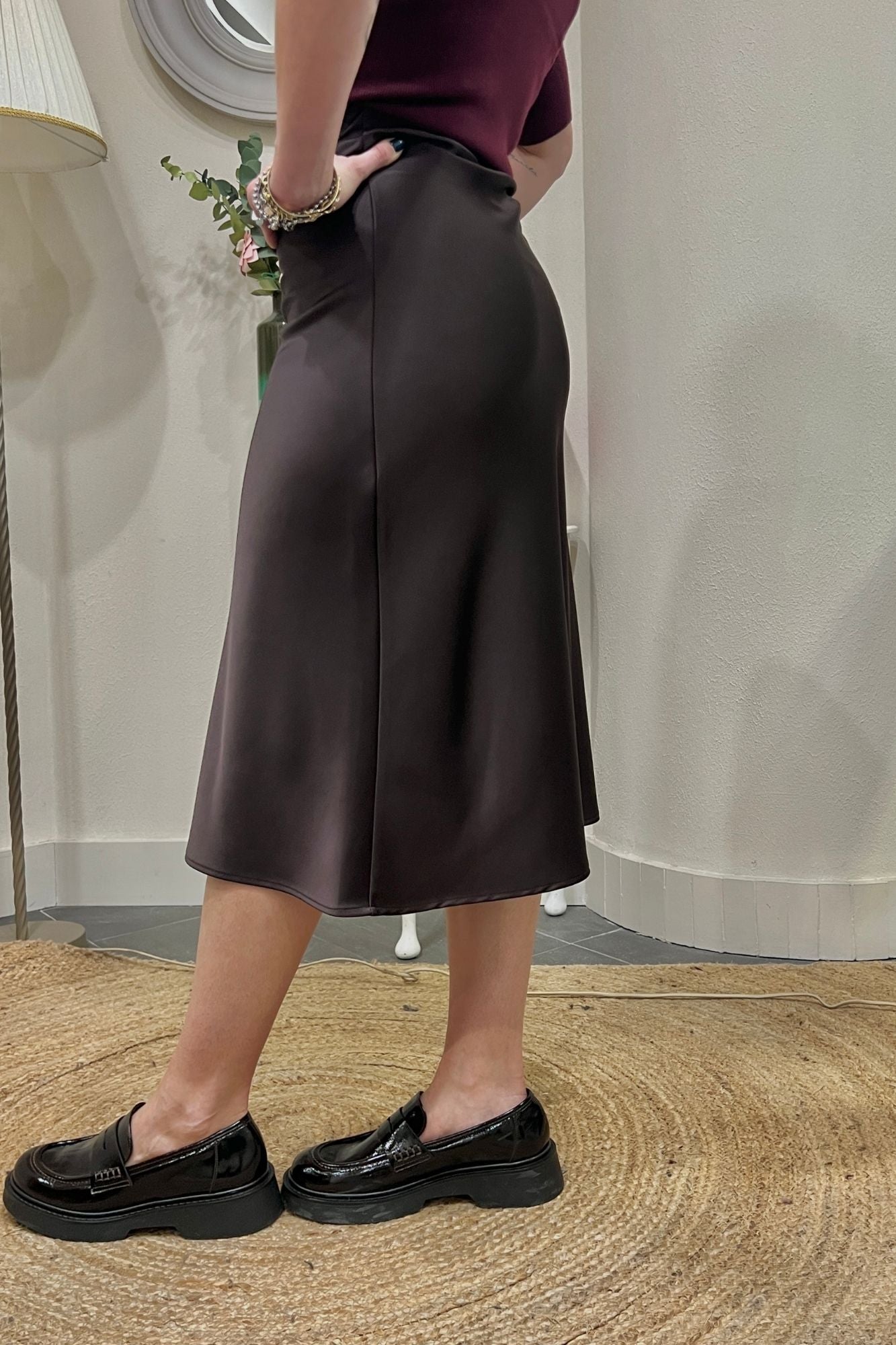 Eleganza effortless: la nostra gonna in satin con elastico ti veste di stile. La lunghezza 3/4 è perfetta per ogni occasione. #GonnaSatin #ModaDonna #ChicStyle #NuoviArrivi #EleganzaSenzaSforzo