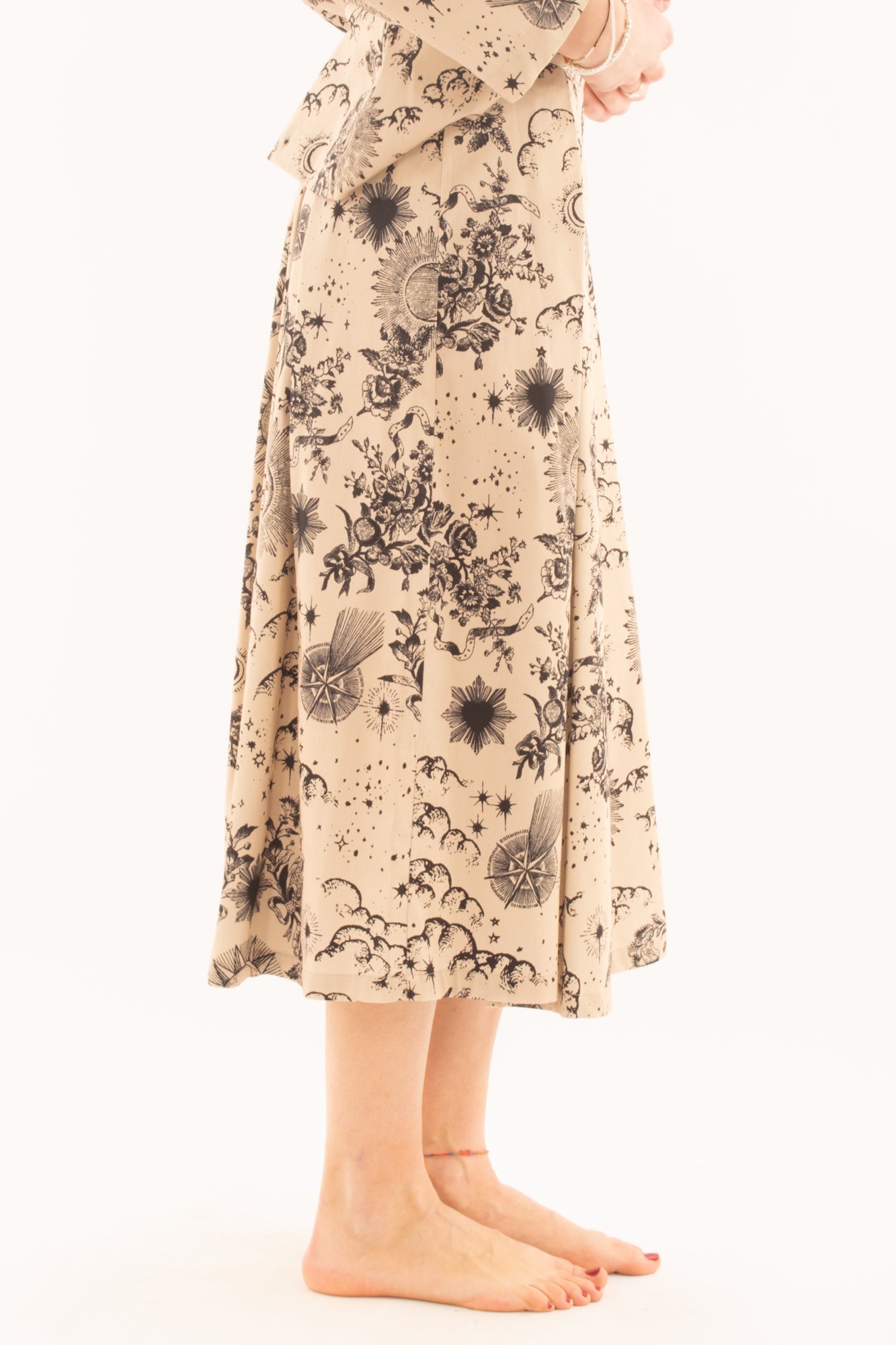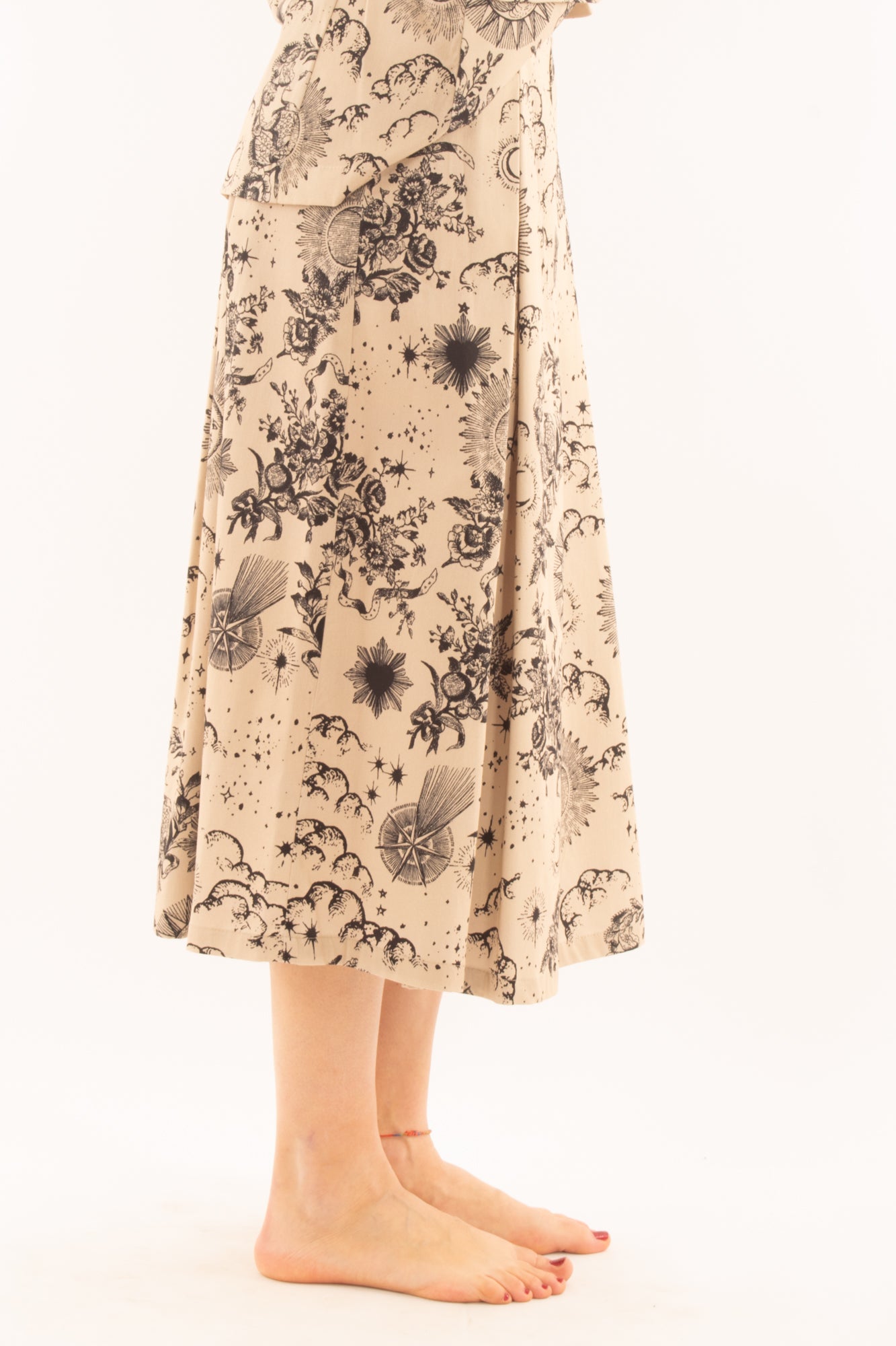 "Scopri la nostra gonna lunga in cotone svasata, caratterizzata da una fantasia unica. Versatile e confortevole, questa gonna è ideale per qualsiasi occasione, dall'ufficio al weekend. Aggiungi un tocco di freschezza al tuo guardaroba con questo esclusivo capo!"