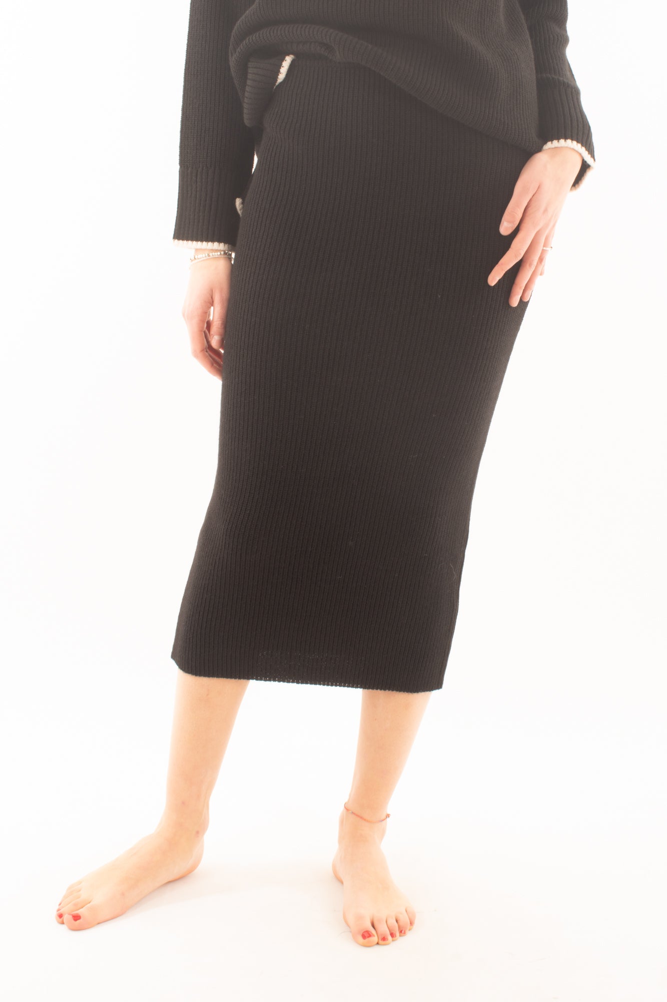 "Scopri l'eleganza senza tempo con la nostra gonna a 3/4 a coste. Realizzata con cura e stile, questa gonna offre un design moderno e versatile. Le coste aggiungono texture e interesse visivo, mentre la lunghezza a 3/4 è perfetta per ogni occasione. Scegli la comodità senza rinunciare allo stile. Acquista la nostra gonna a coste ora e aggiungi un tocco di classe al tuo guardaroba."