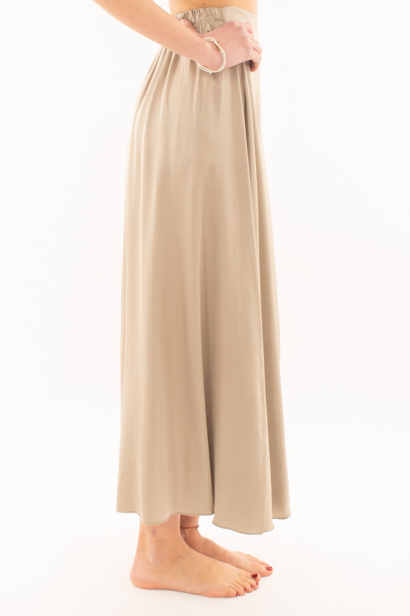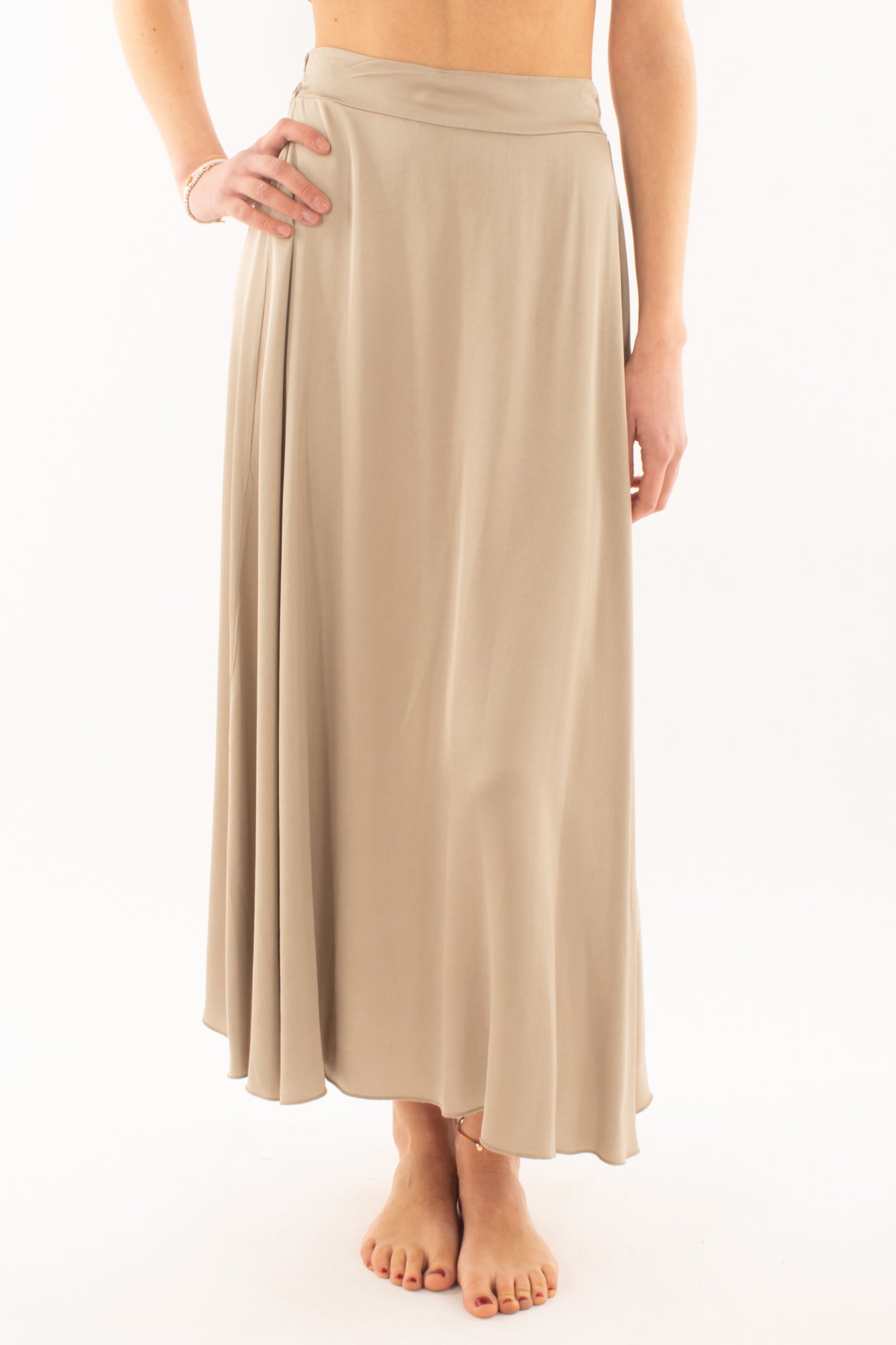 Eleva il tuo stile con la nostra lussuosa gonna lunga in satin. Realizzata con tessuto pregiato, questa gonna offre un tocco di eleganza e comfort. Il design fluido e la finitura satinata catturano la luce in modo seducente, mentre la lunghezza aggiunge un tocco di sofisticatezza. Perfetta per occasioni speciali o serate glamour, questa gonna è un must-have nel guardaroba di ogni donna che cerca raffinatezza senza compromessi. Scopri l'eleganza senza sforzo con la nostra gonna in satin lunga, un capo iconico che si distingue per stile e raffinatezza.