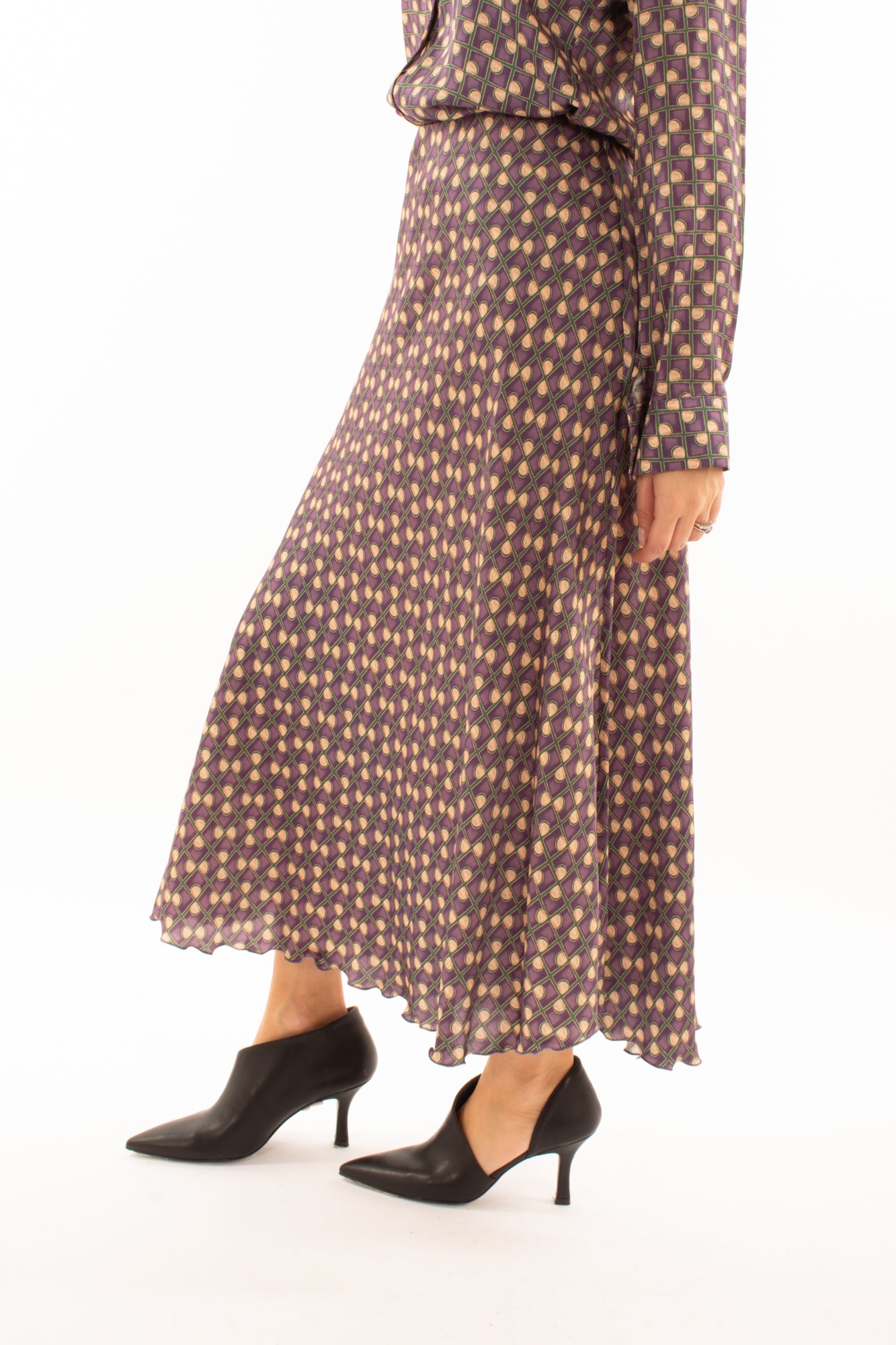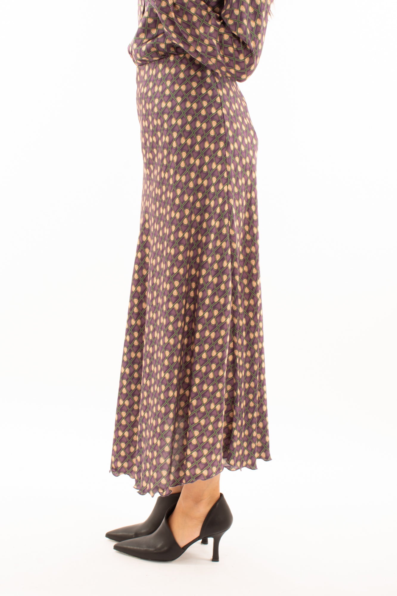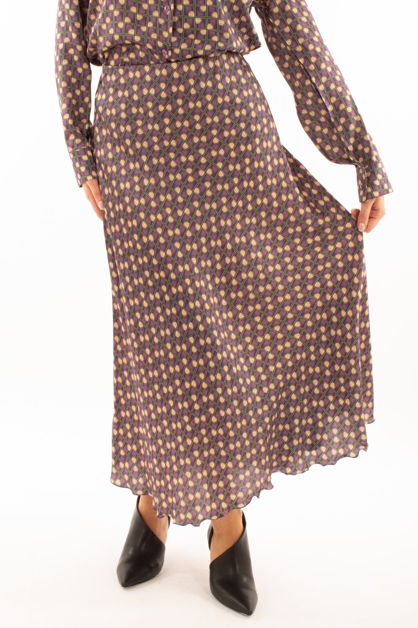 Esalta la tua eleganza con questa gonna lunga in satin di viscosa a fantasia. Realizzato con tessuto di qualità, questo capo di abbigliamento offre comfort e un tocco di glamour al tuo outfit, per un look unico ed elegante.