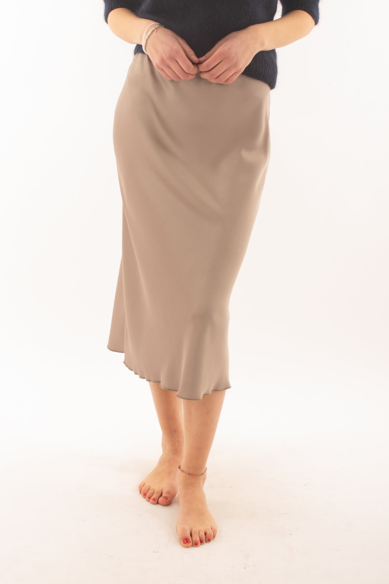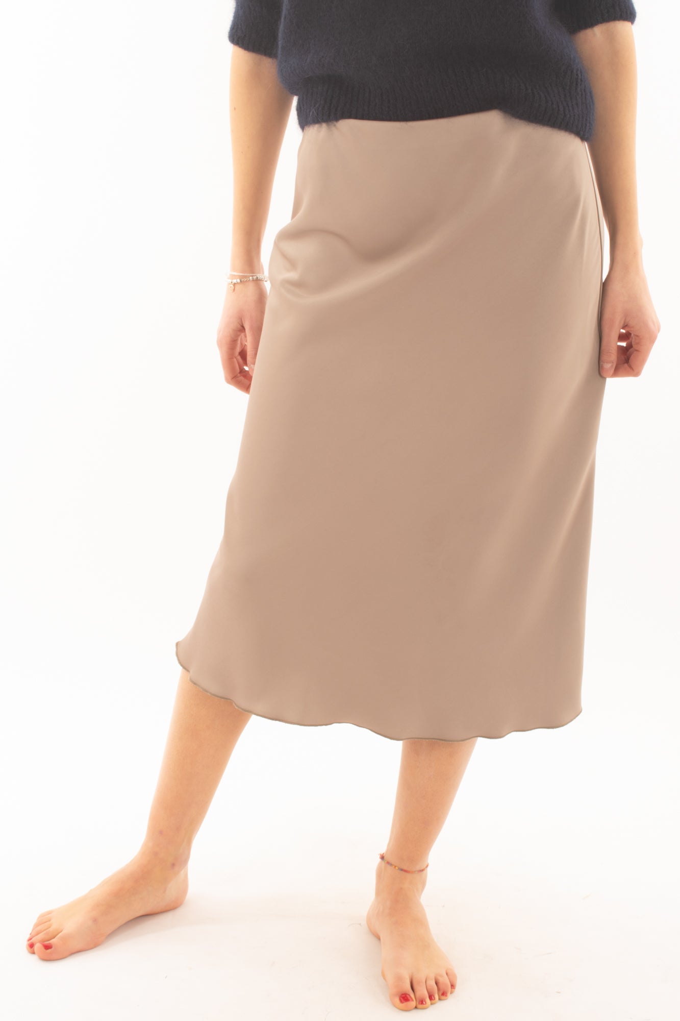 Eleva il tuo stile con la nostra esclusiva gonna di satin 3/4. Realizzata con tessuto di alta qualità, questa gonna sfoggia un'eleganza senza tempo. La lunghezza 3/4 conferisce un tocco moderno e versatile, perfetto per ogni occasione. Confortevole e chic, questa gonna è un must-have nel guardaroba di ogni donna sofisticata. Scegli la raffinatezza del satin e crea outfit irresistibili. Entra nell'eleganza senza tempo con la nostra collezione di gonne.