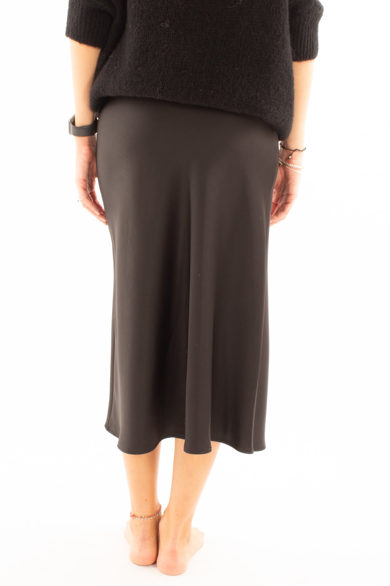 La gonna in satin lunga è chic ed elegante, perfetta per le occasioni importanti. Realizzata con un tessuto di alta qualità, è resa ancora più confortevole dalla vita elastica. La gonna è stata progettata con cura per creare un look di classe e raffinatezza.