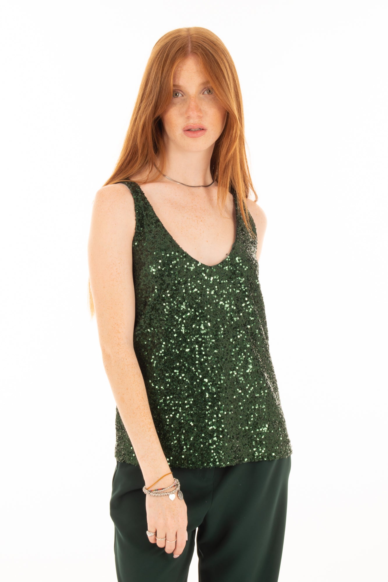 Questa canottiera presenta un taglio a triangolo con paillette, cosa che si traduce in comfort e stile. Materiali pregiati e lavorazione eccellente garantiscono comfort ed eleganza per tutte le occasioni.