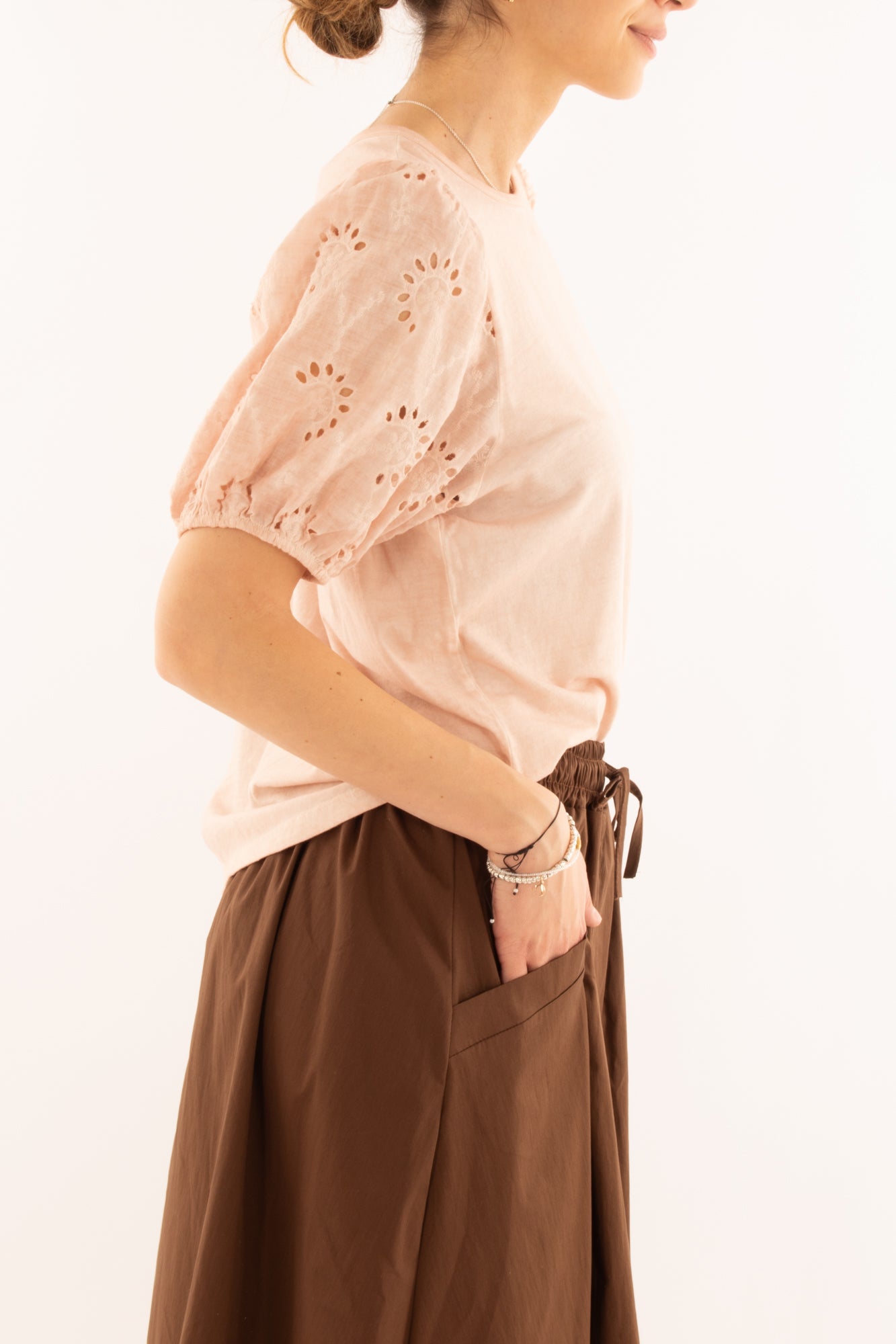 Maglia con maniche in pizzo san gallo da Donna Metoo- Rosa
