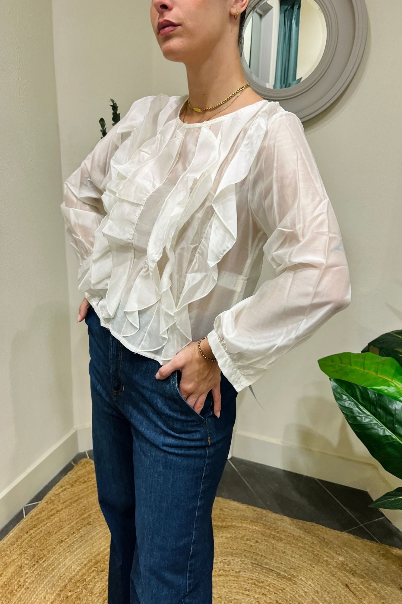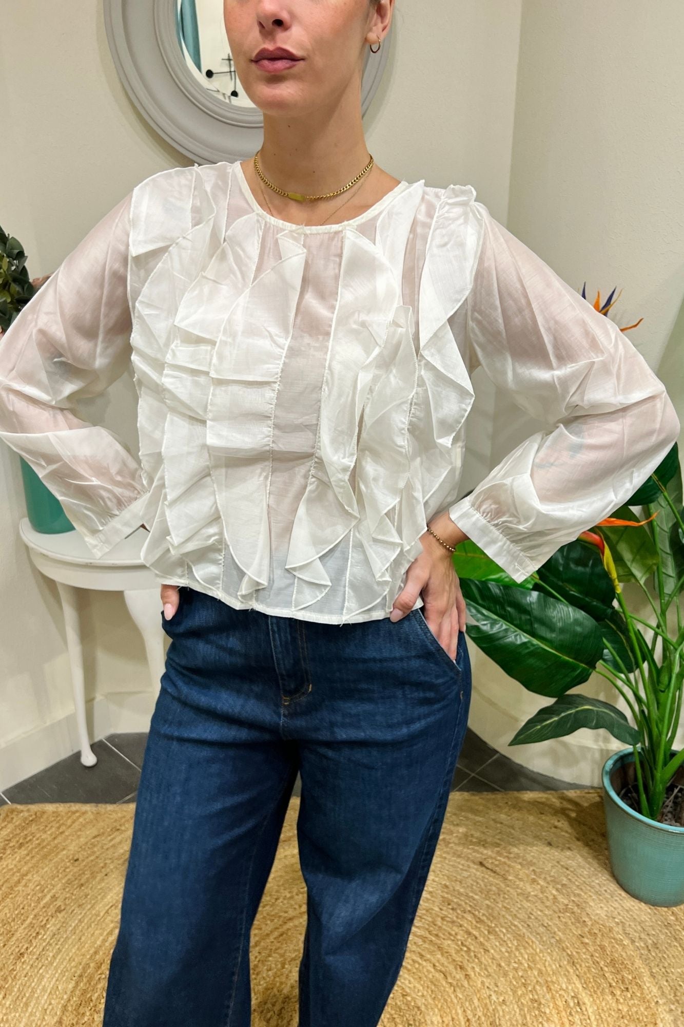 Una blusa a manica lunga con dettagli di ruches è un capo romantico e versatile. Realizzata per donare un tocco di femminilità e movimento, è perfetta per outfit eleganti e sofisticati. Esplora la nostra collezione e scopri come trasformare il tuo stile.