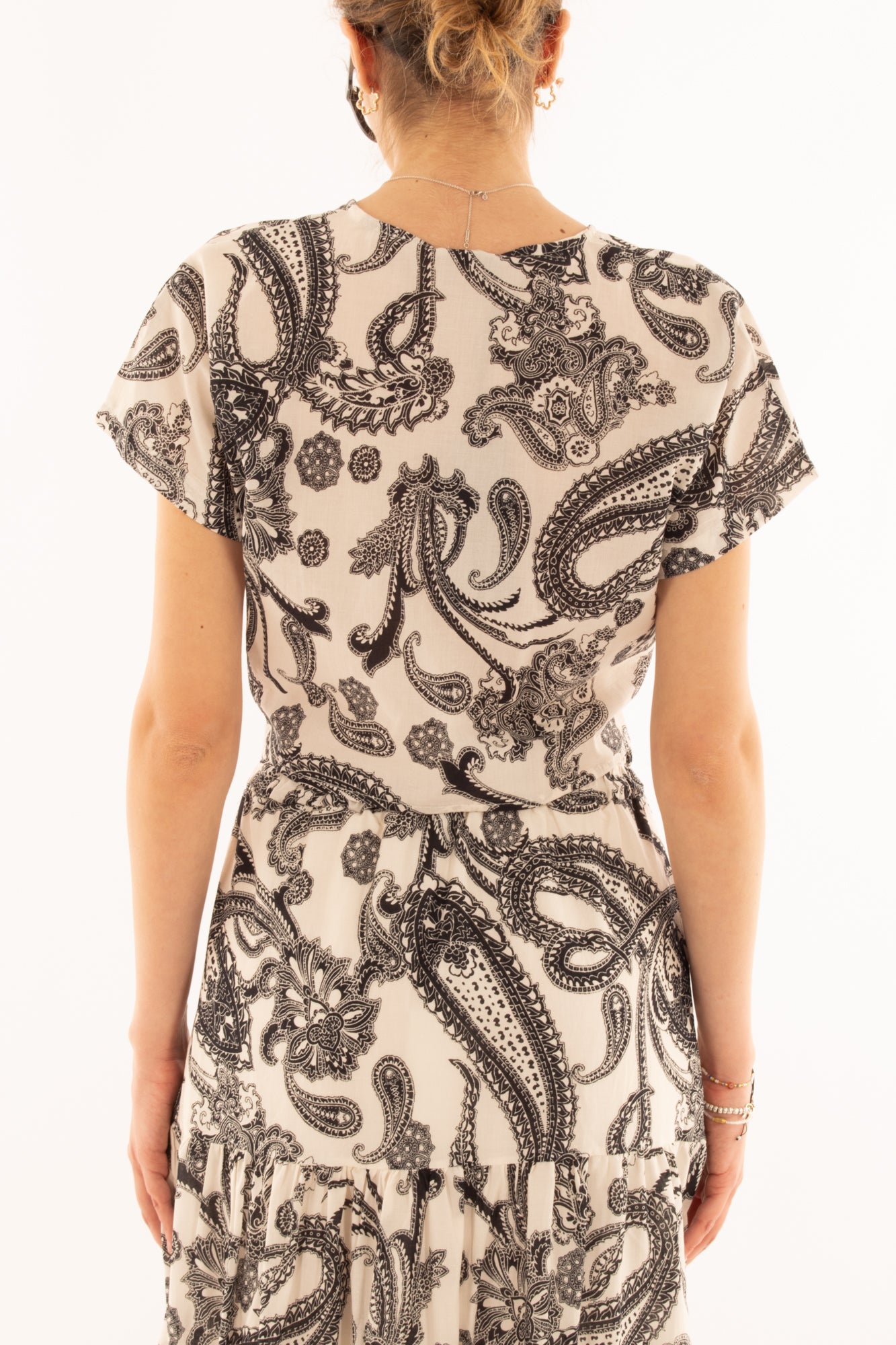 Camicia corta con nodo fantasia: stile moderno e casual per ogni occasione. Realizzata con tessuti di alta qualità, offre comfort e un tocco di originalità. Ideale per look freschi ed estivi, si abbina facilmente a jeans o gonne. Un capo versatile che arricchisce il tuo guardaroba.