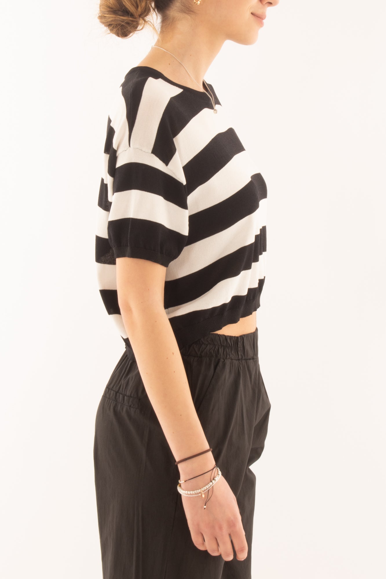 Maglia corta rigata da Donna Metoo - Nero