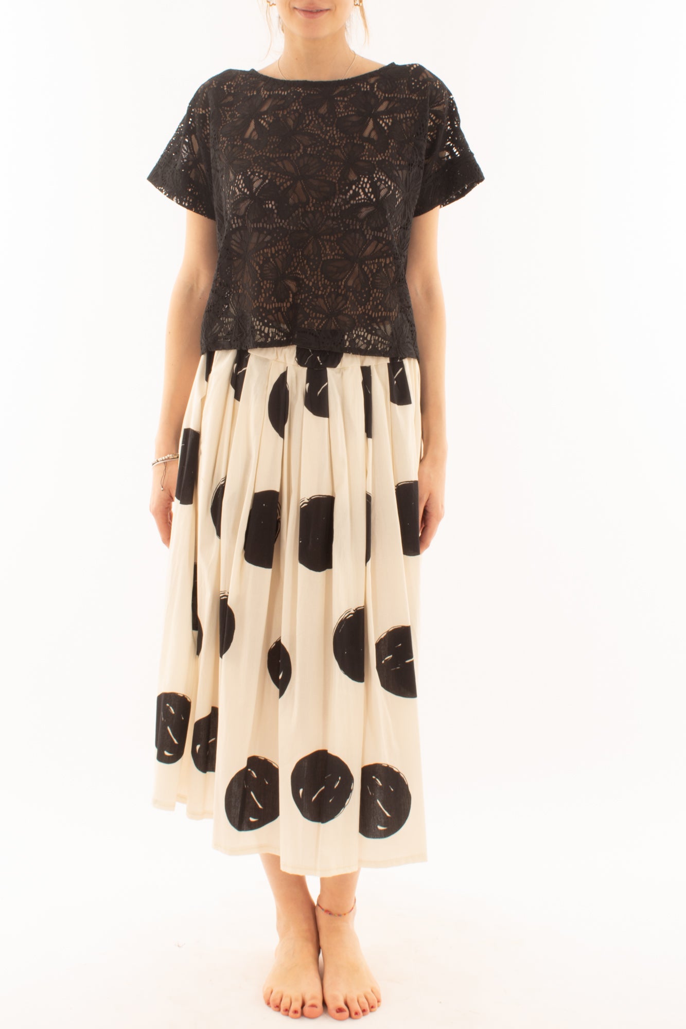 Maglia taglia dritta in pizzo a mezze maniche, ideale per un look elegante e femminile. Realizzata con materiali di alta qualità, offre comfort e stile in ogni occasione. Perfetta da abbinare a pantaloni o gonne, per un outfit raffinato e alla moda.