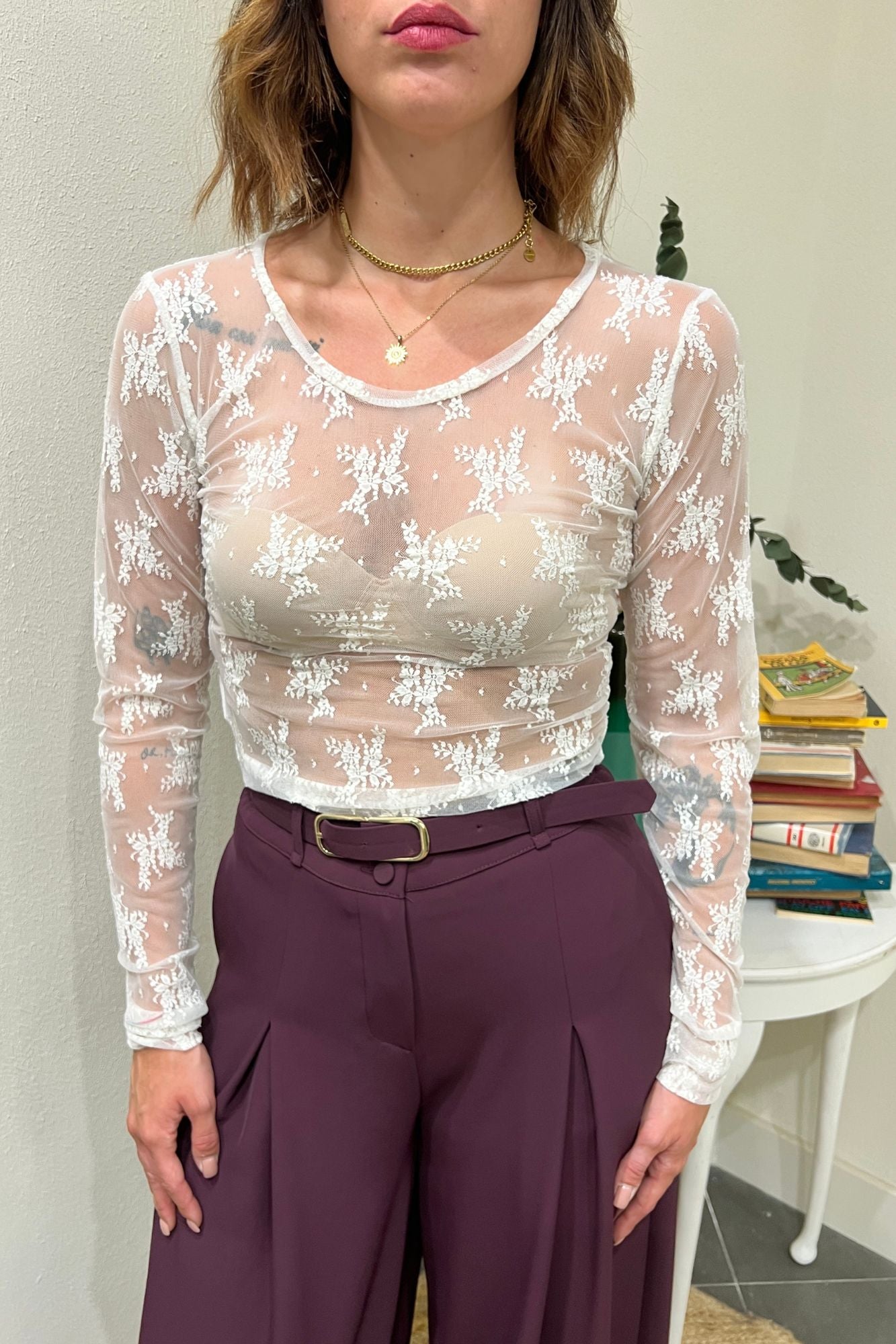 Rinnova il tuo guardaroba con la nostra esclusiva maglia girocollo in pizzo, un capo che unisce romanticismo e stile contemporaneo. Perfetta per la donna che ama distinguersi con un tocco di classe, questa maglia è l'alleato ideale per creare outfit sia casual che sofisticati.