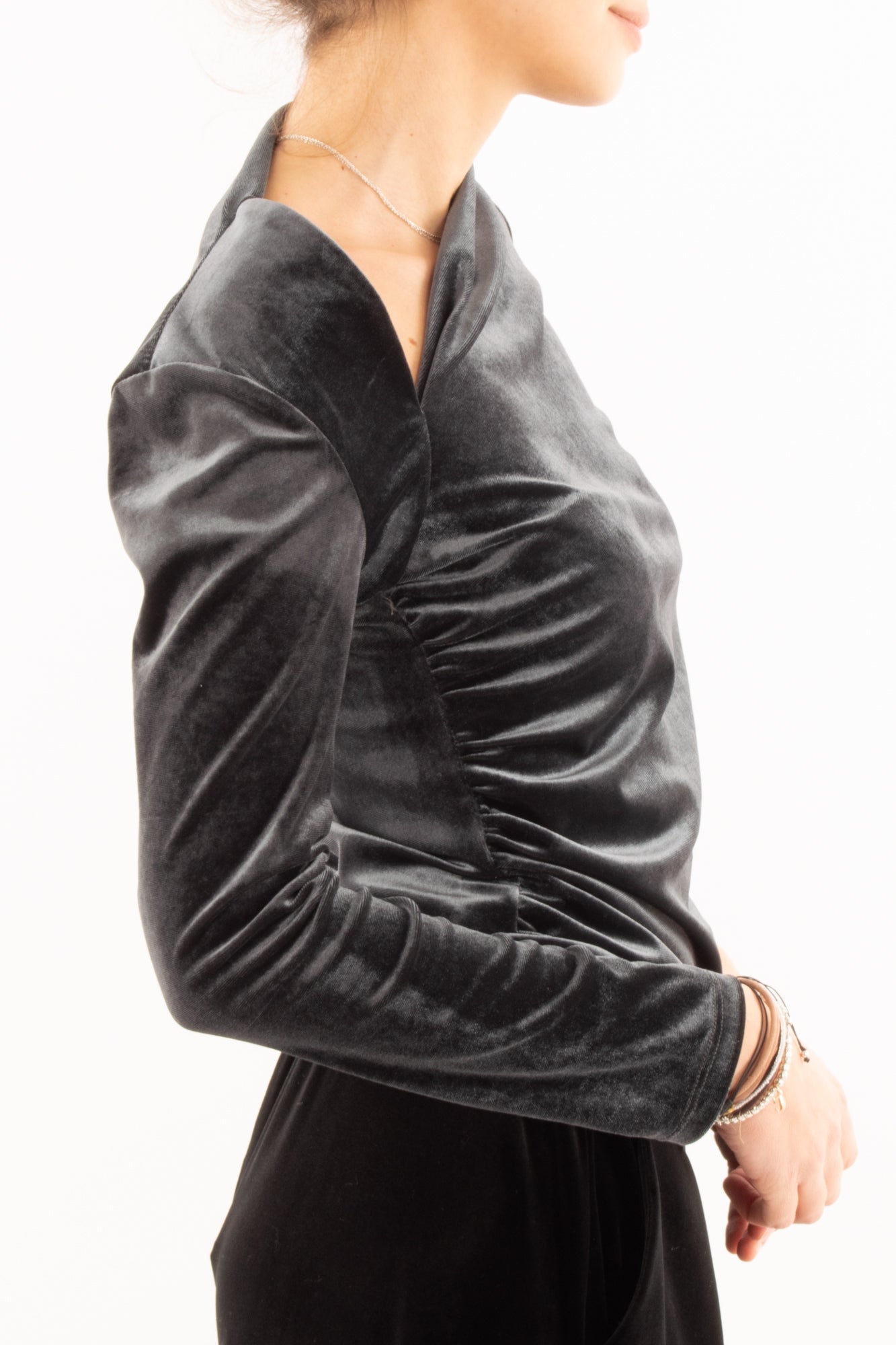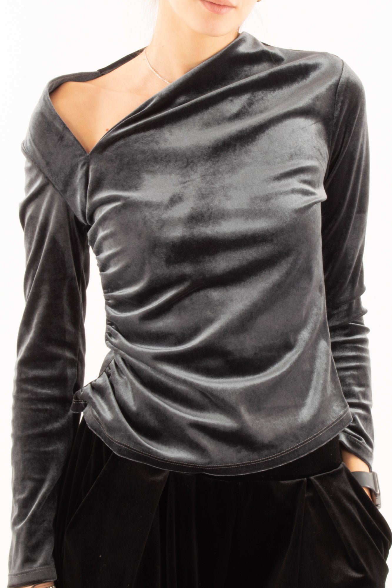 Maglia in velluto liscio con drappeggio di lato Motel - Grigio