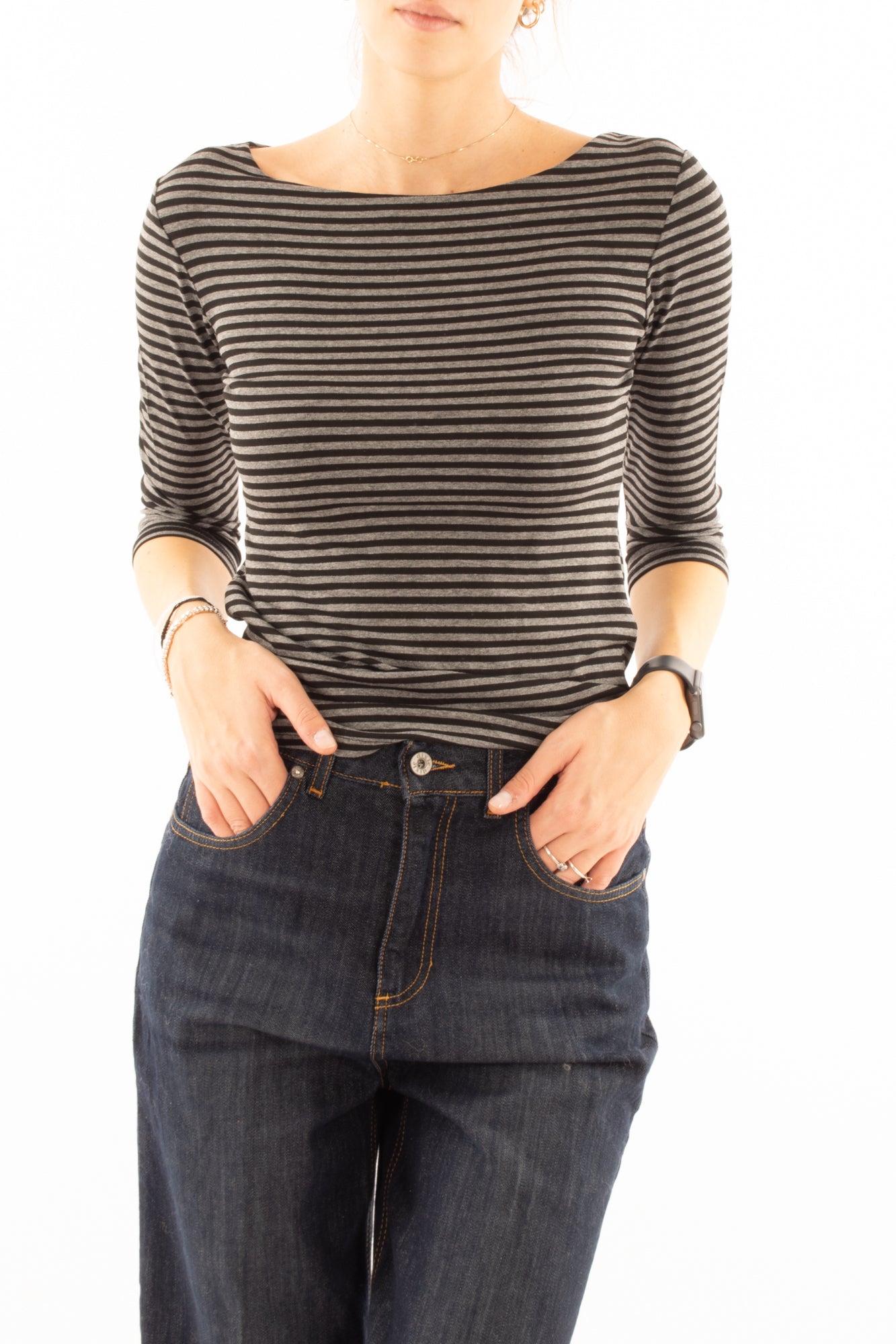 Questa maglia è realizzata in un tessuto morbido e resistente, con collo a barca e con dettagli a righe fini per rendere un look classico. Ideale per le giornate di mezza stagione.
