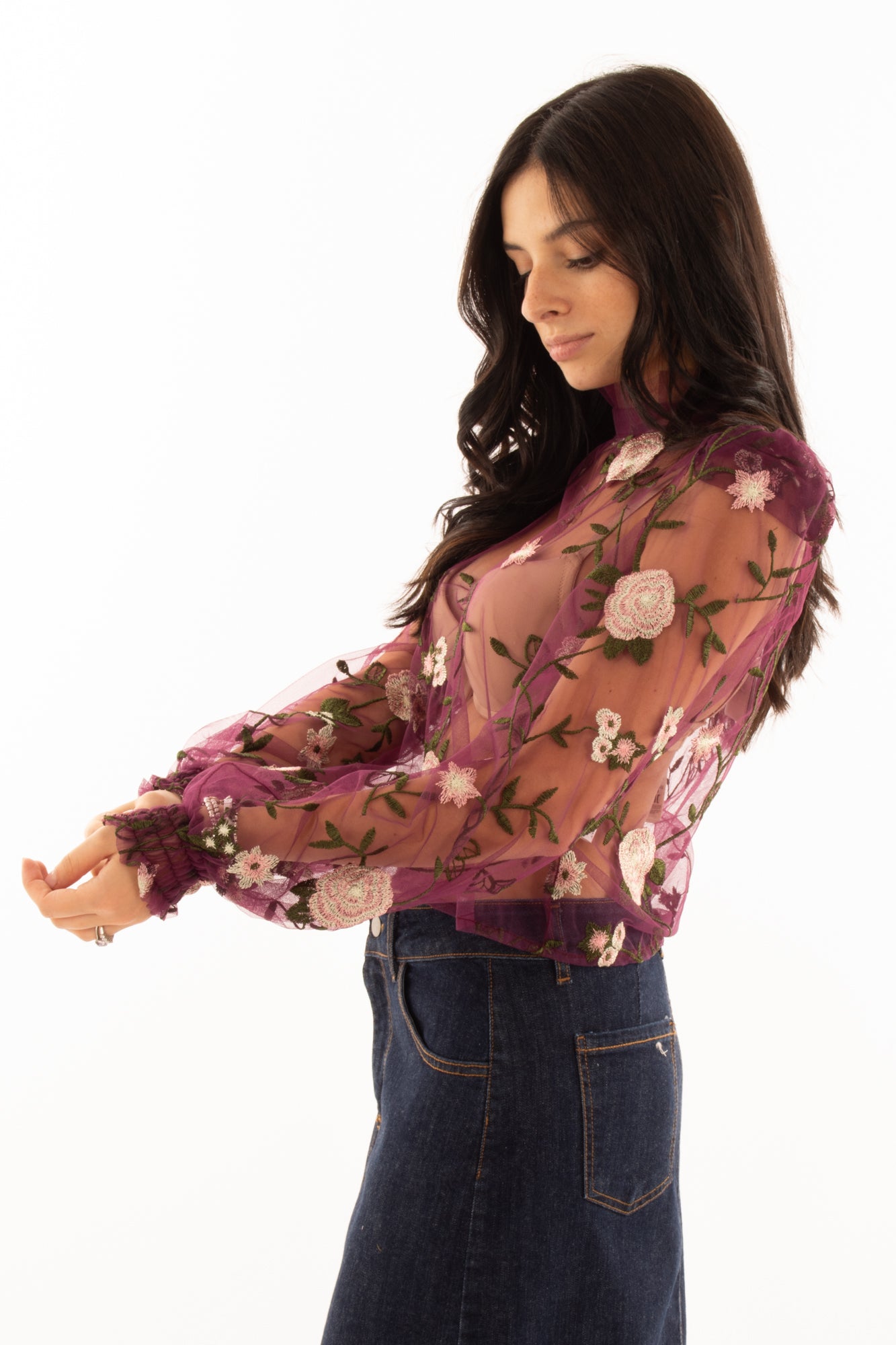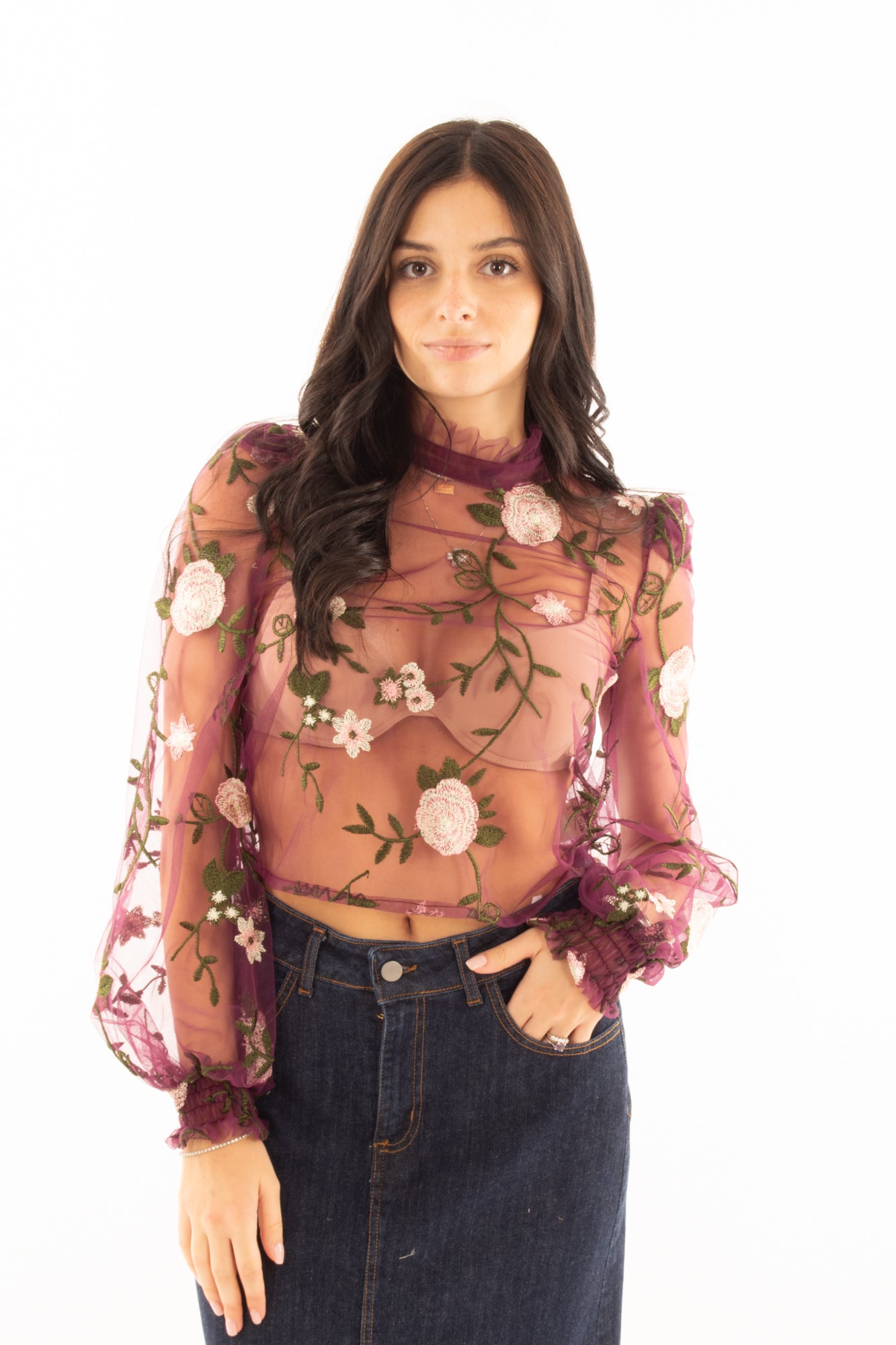 La nostra maglia è realizzata con tulle di alta qualità e ha un girocollo addolcito con ricami floreali, per un look curato e sofisticato. I ricami dettagliati offrono un tocco di classe alla maglia e sono stati realizzati con cura per garantire qualità duratura. Indossalo con stile e sentiti ben vestita in ogni occasione.