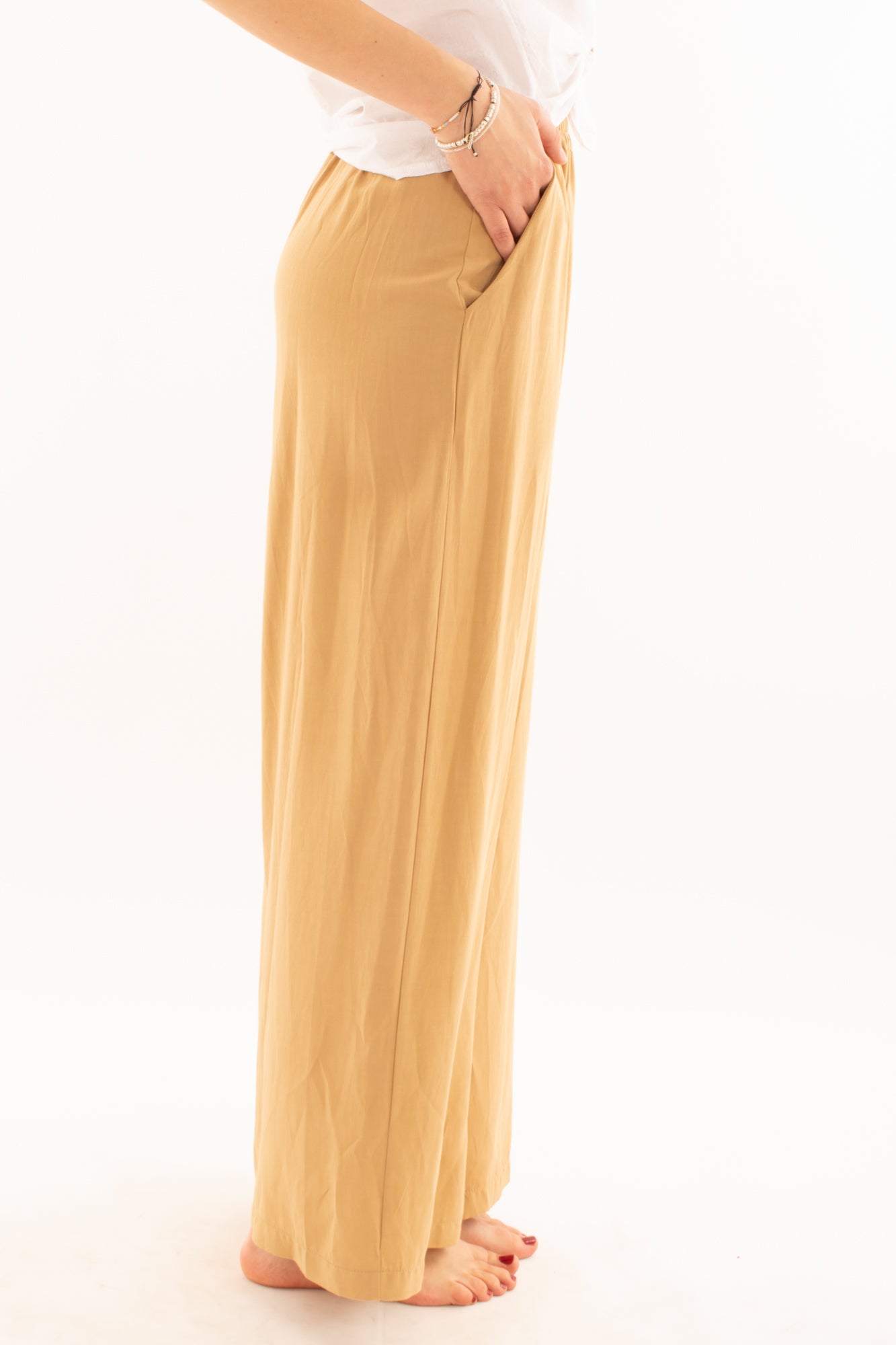 Pantalone a palazzo in lino e viscosa da Donna Metoo - Sabbia