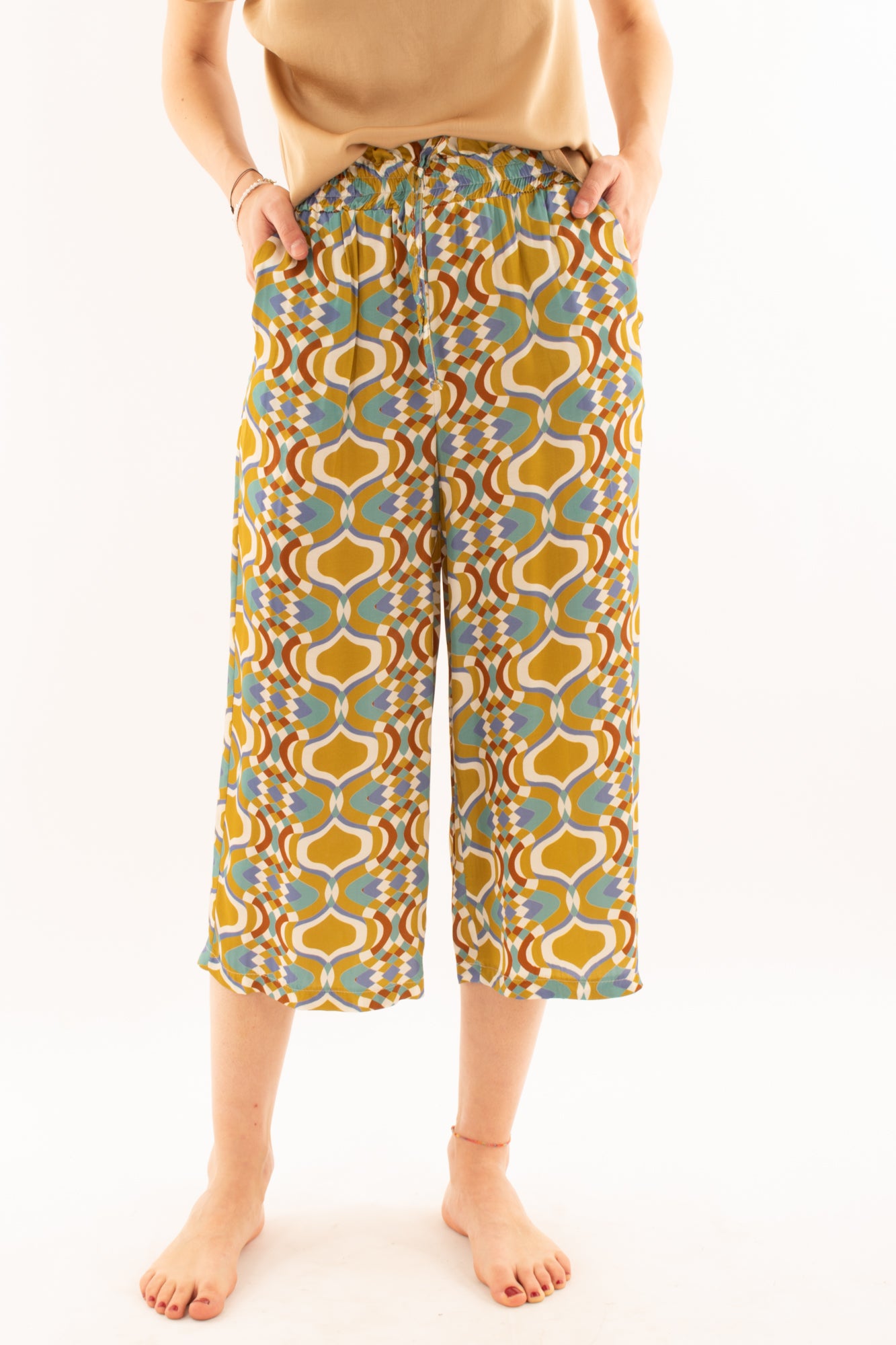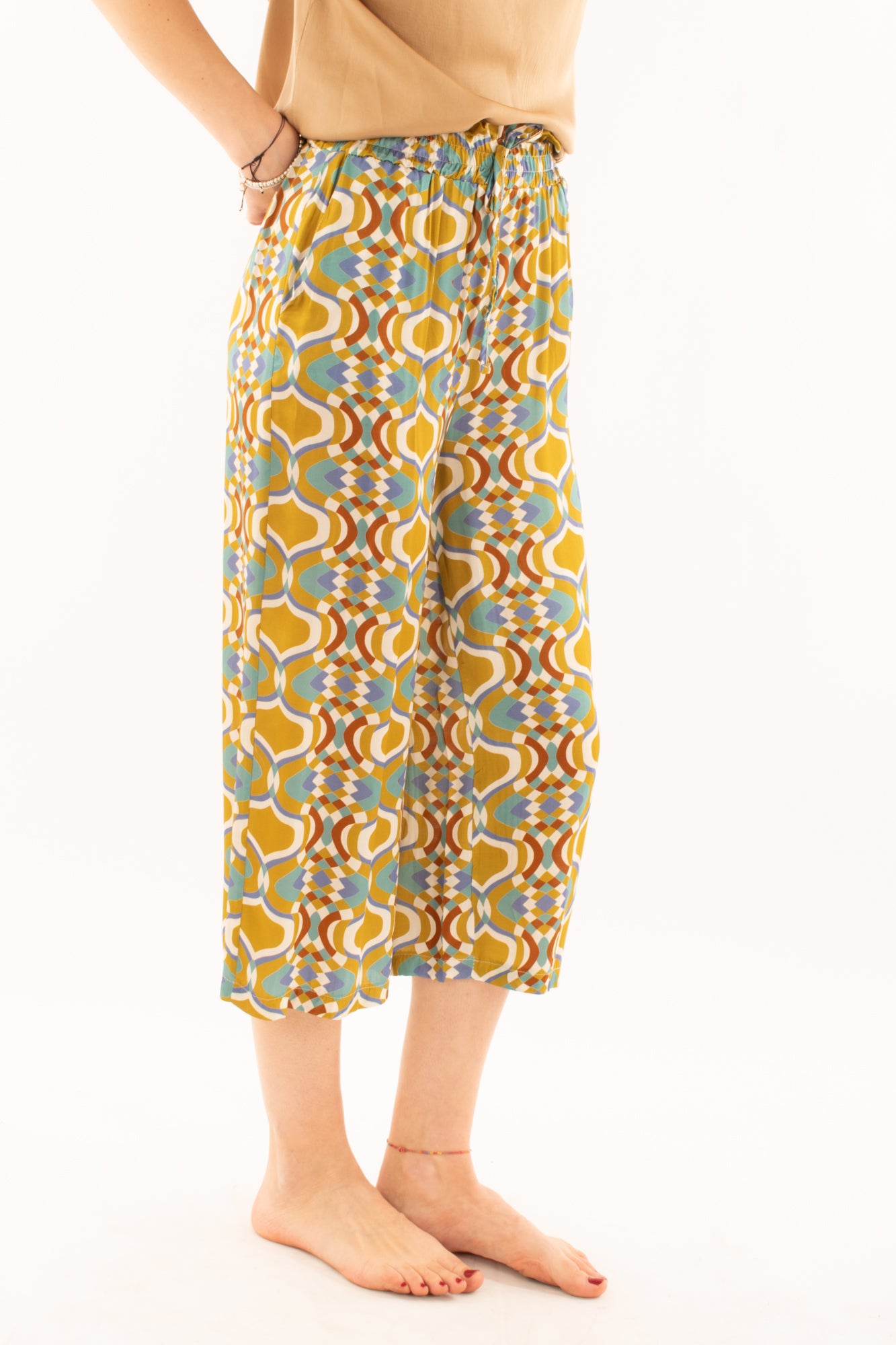 Pantalone giometrico in viscosa da Donna Metoo - Senape