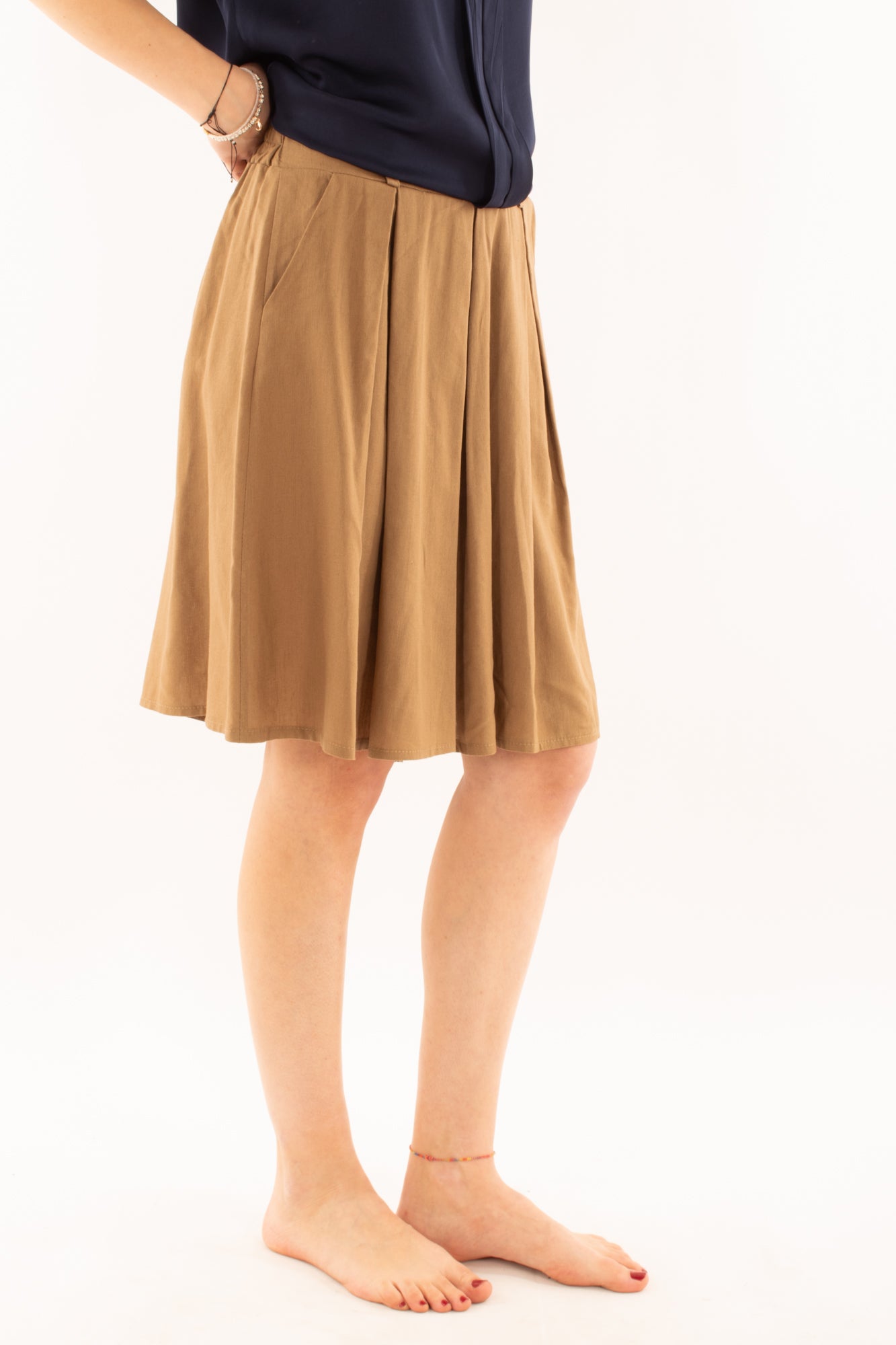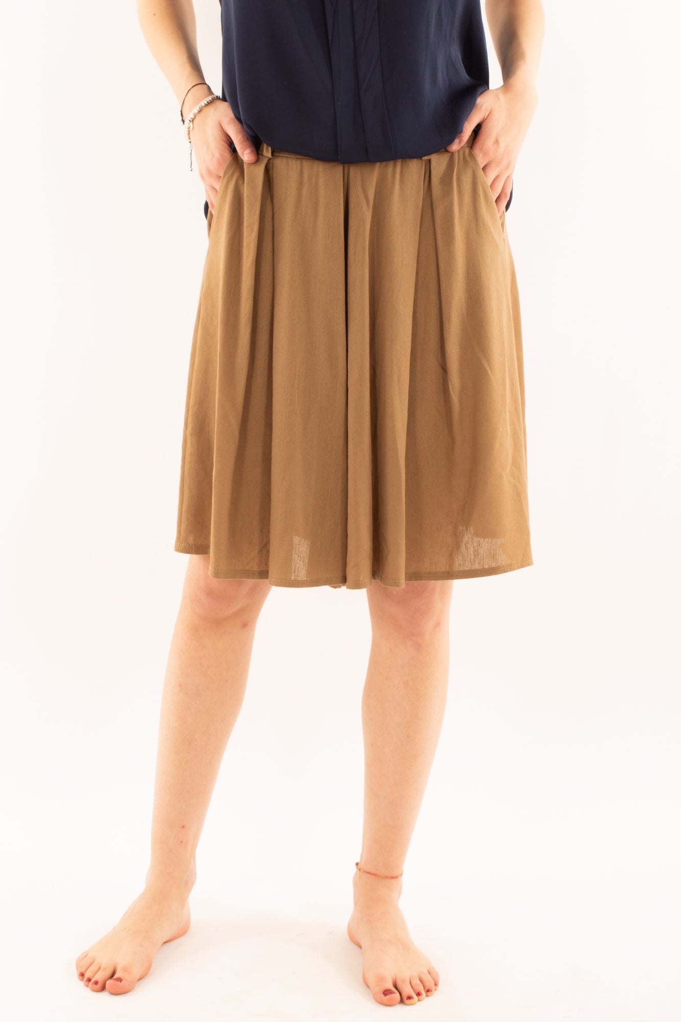 Scopri il nostro short al ginocchio con pence profonde effetto gonna, perfetto per un look elegante e sofisticato. Realizzato con tessuti di alta qualità, offre comfort e stile in ogni occasione, dalla giornata in ufficio alle uscite serali. Aggiungi un tocco chic al tuo guardaroba.