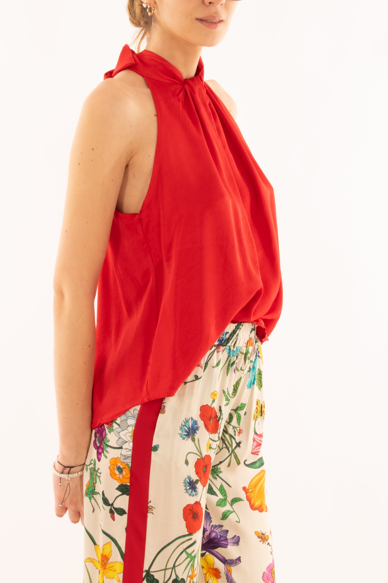 Elegante maglia smanicata in viscosa con allacciatura al collo e raffinata goccia sul davanti e sul retro. Perfetta per un look sofisticato e moderno, ideale per serate estive o occasioni speciali. Comfort e stile si incontrano in un capo versatile e chic.