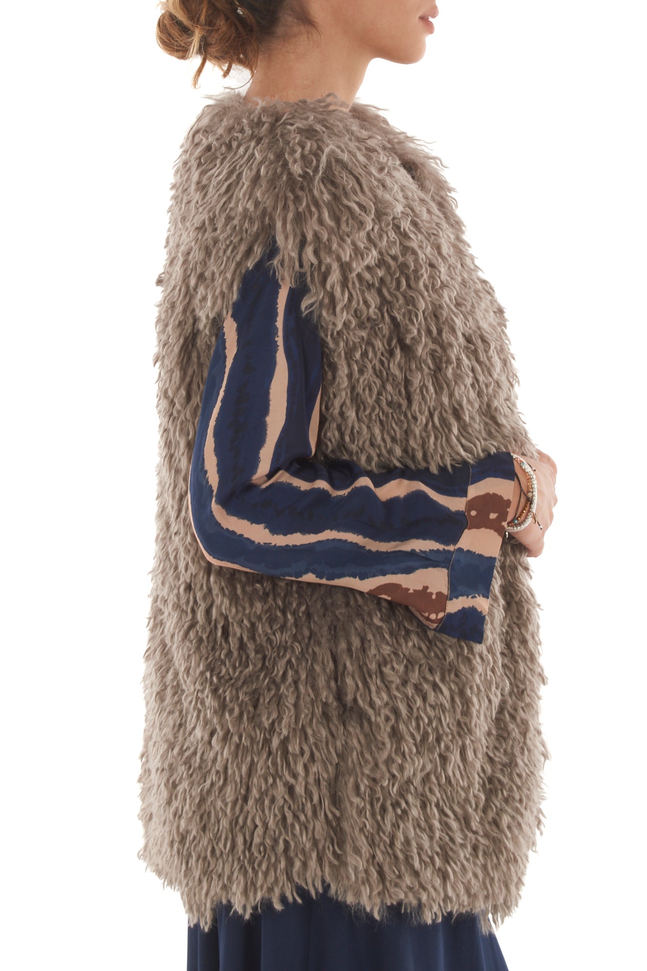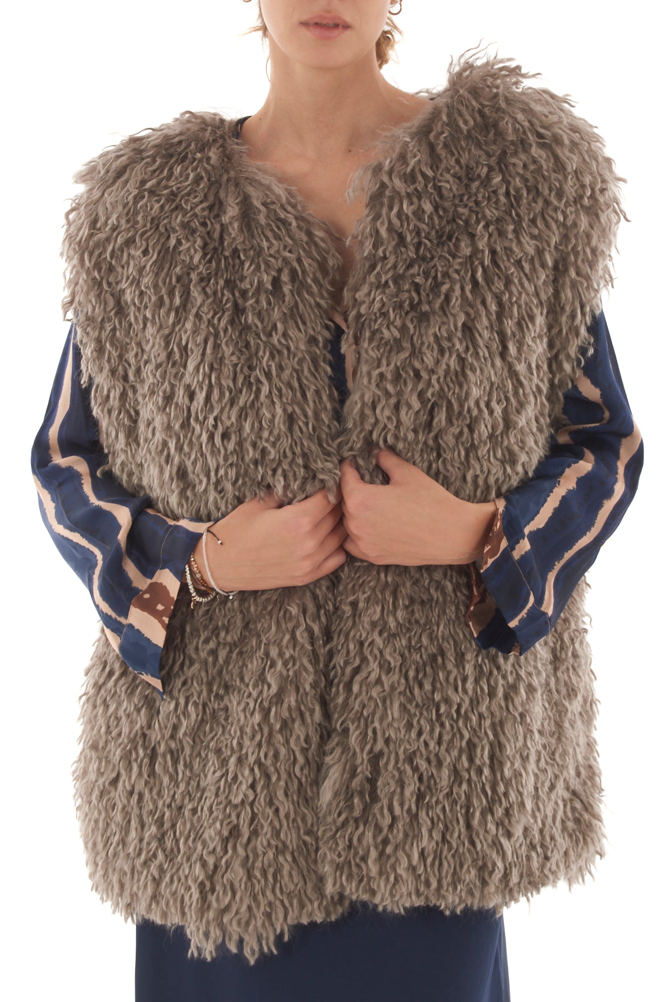 Smanicato 3/4 in eco pelliccia, perfetto per aggiungere un tocco di eleganza al tuo guardaroba. Il design senza maniche lo rende ideale per mezze stagioni, con un comfort avvolgente e uno stile sofisticato. Un capo versatile per outfit casual o più raffinati.