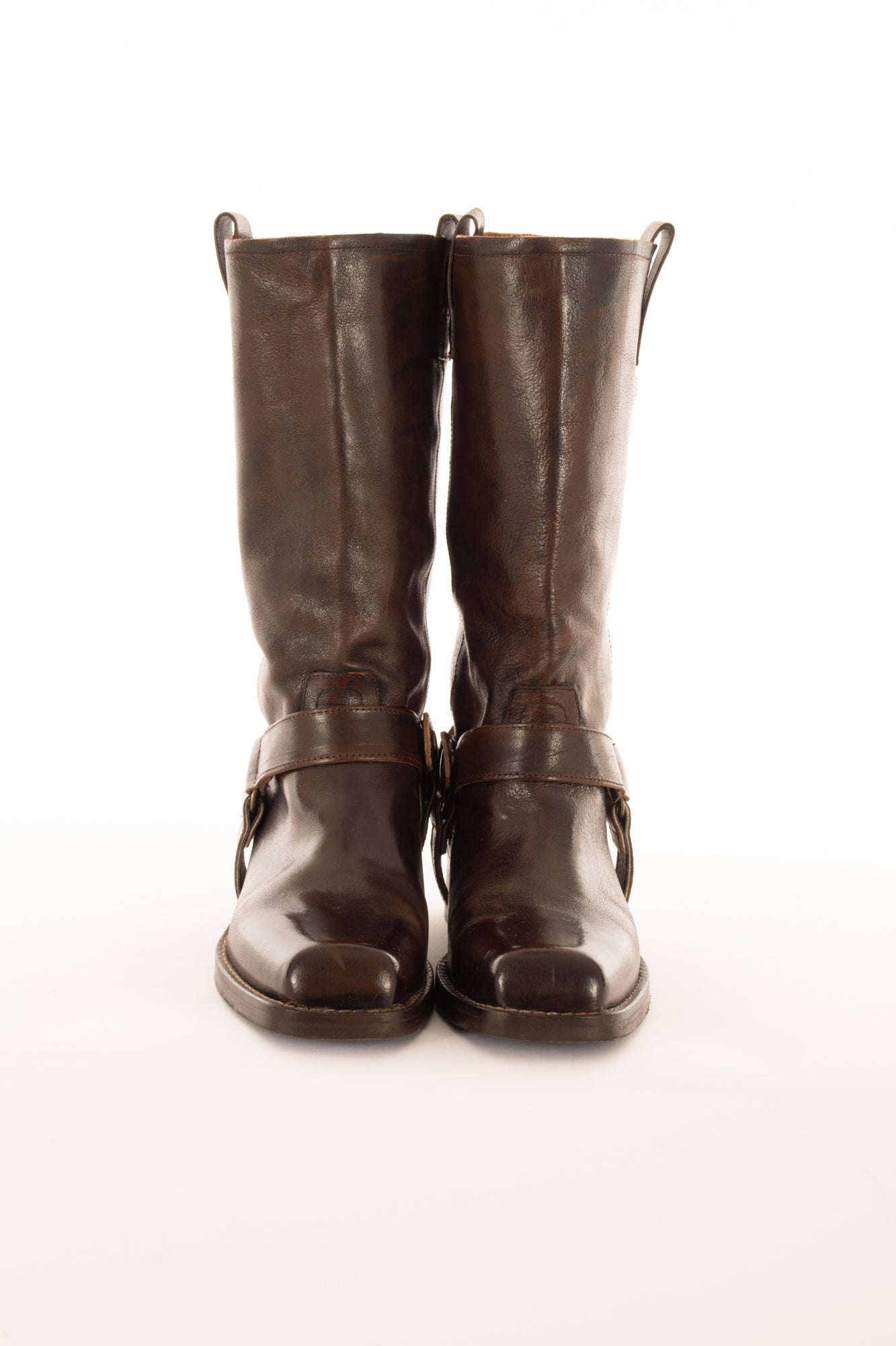 Scarpa è uno stivale elegante dalla punta quadra in pelle pregiata con una fibia rimovibile. La sua tomaia resistente e l'eccellente qualità ne fanno una scelta di lusso per un outfit d'ispirazione contemporanea.