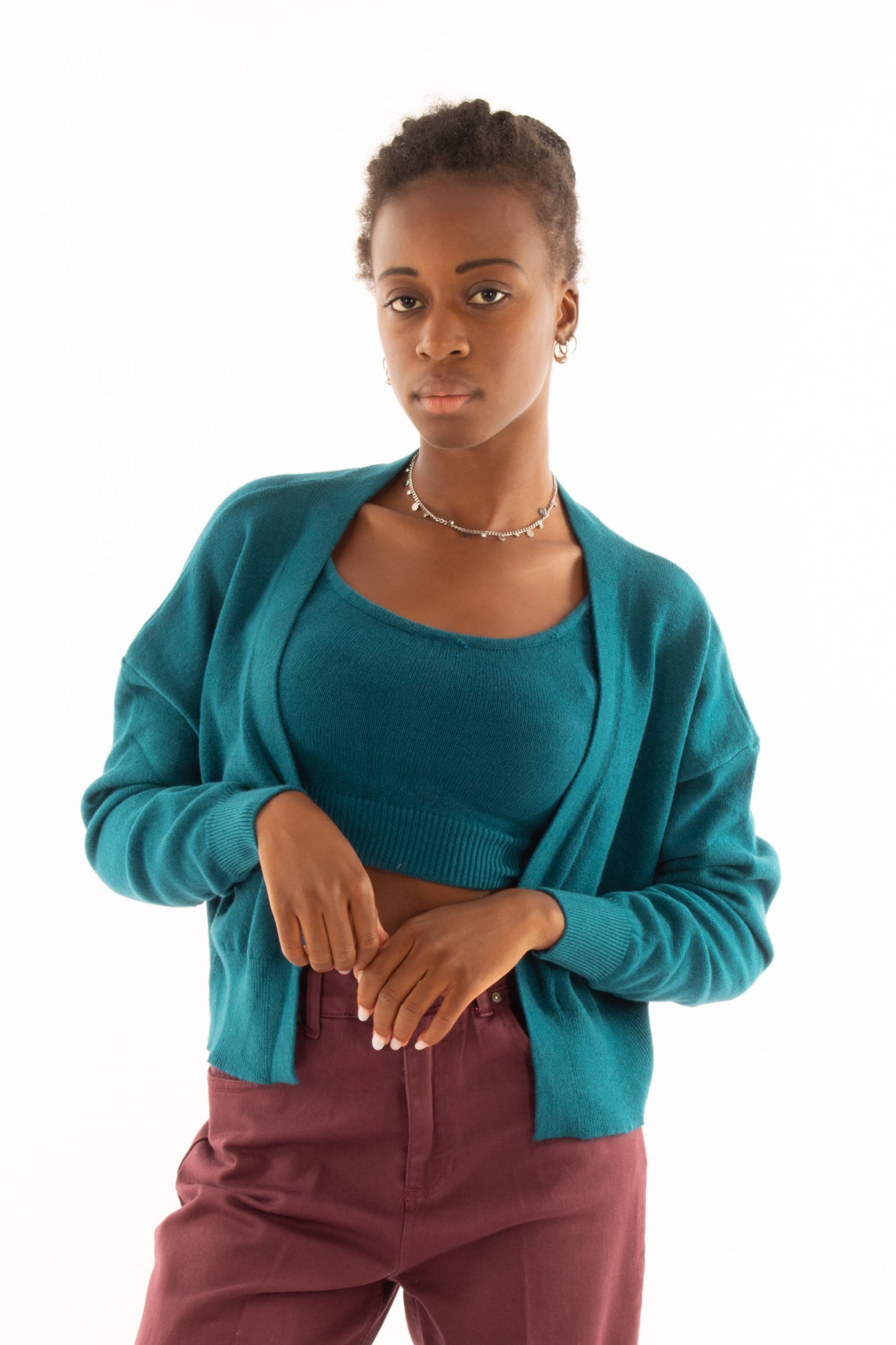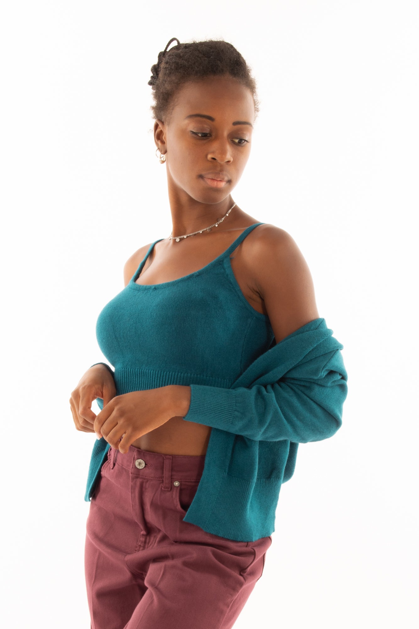 Goditi gli abbinamenti senza sforzo del twinset, composto da canottiera corta e cardigan aperto. La praticità di questo look si unisce allo stile unico per creare un outfit strepitoso con pochissimi sforzi.