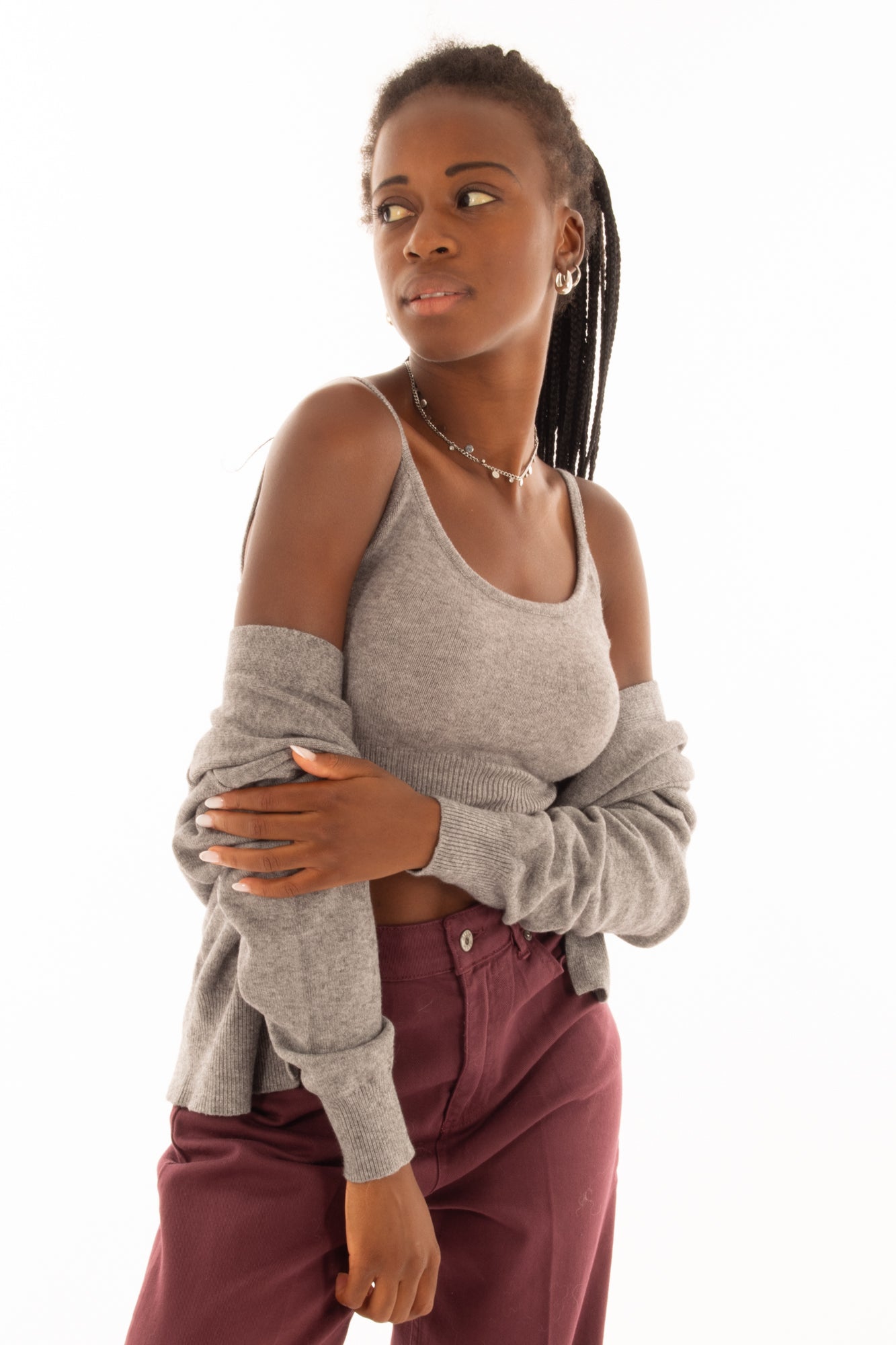 Goditi gli abbinamenti senza sforzo del twinset, composto da canottiera corta e cardigan aperto. La praticità di questo look si unisce allo stile unico per creare un outfit strepitoso con pochissimi sforzi.