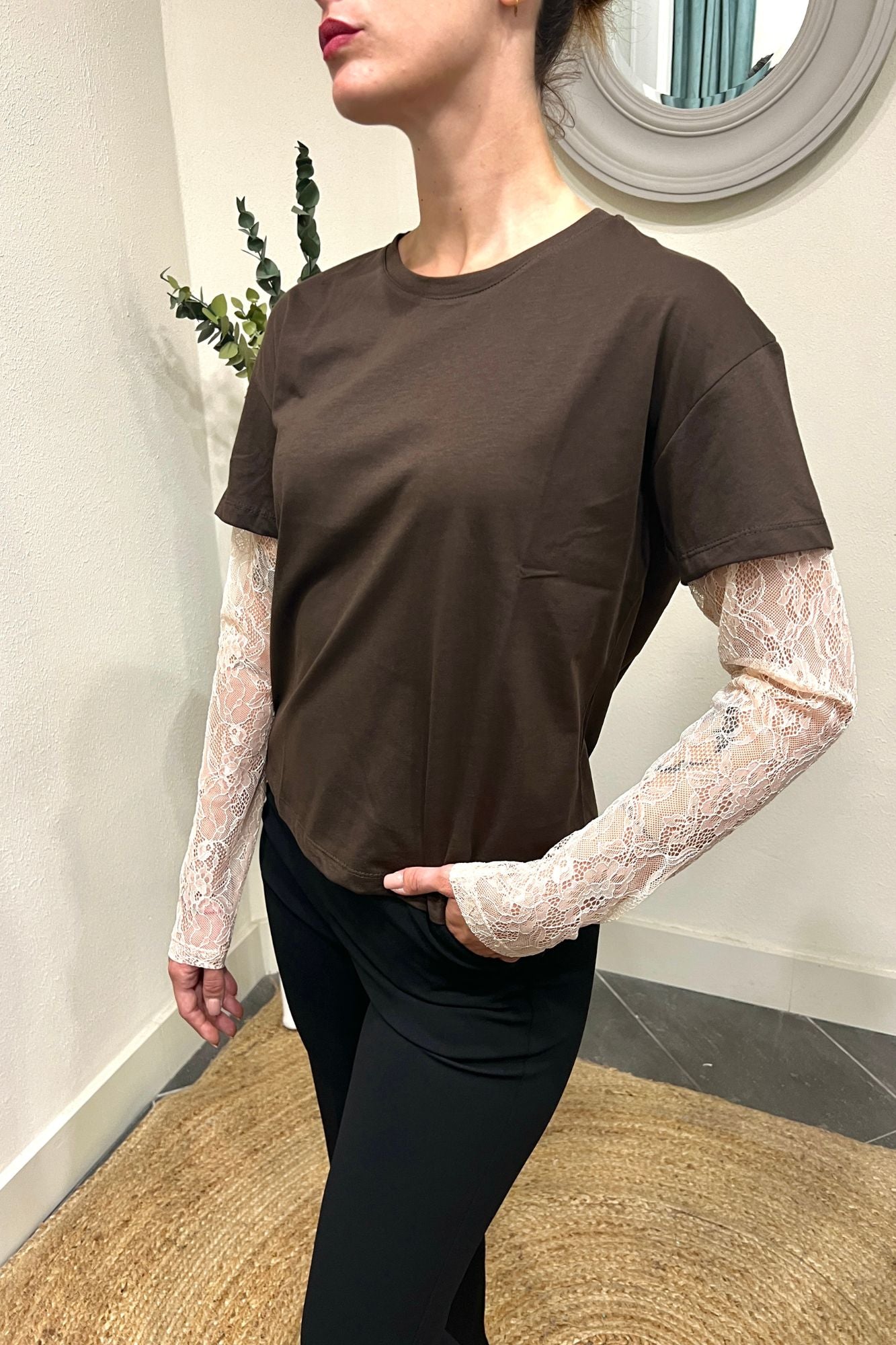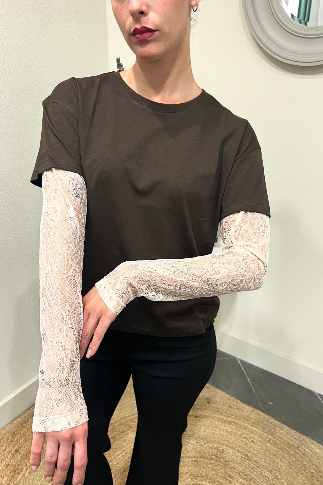 Un classico rivisitato: la nostra T-shirt in cotone si reinventa con maniche in pizzo per un tocco di eleganza unico. ? Perfetta per ogni outfit, unisce la comodità del basic alla raffinatezza del pizzo. #TshirtPizzo #ModaDonna #Pizzo #StileUnico #EleganzaSenzaSforzo