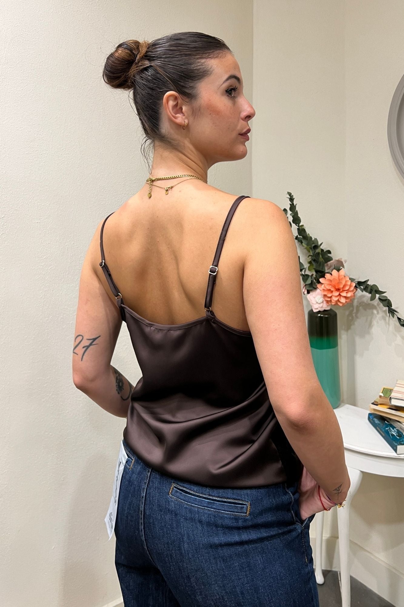 Canottiera in satin con pizzo: il capo perfetto per un tocco di eleganza sensuale. Le bretelline sottili e il pizzo raffinato la rendono ideale da sola o sotto una giacca. Un must-have versatile.