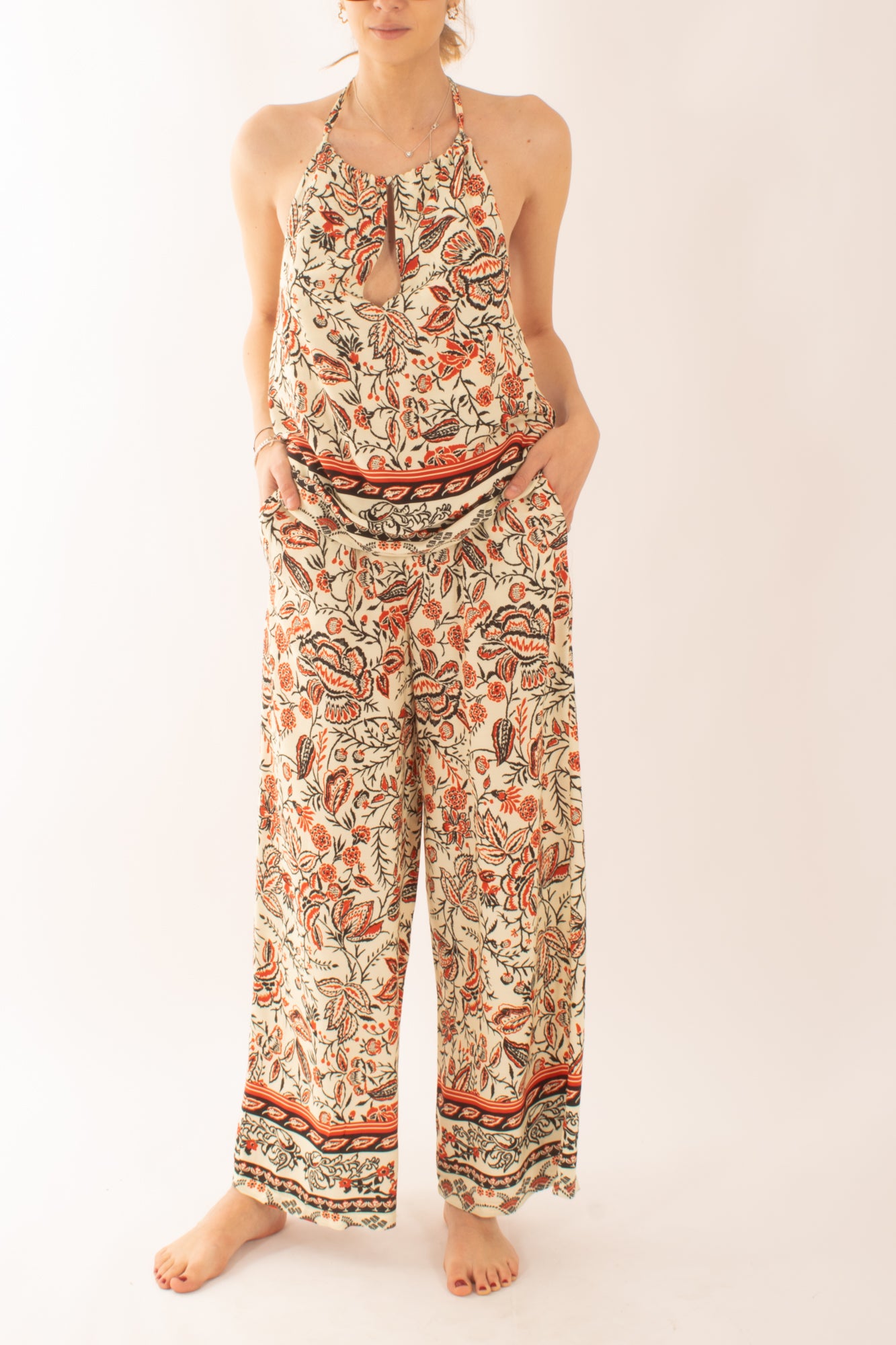 Elegante top fiorato con allacciatura al collo, caratterizzato da una sensuale goccia sul davanti e una schiena scoperta. Un capo di tendenza ideale per valorizzare il tuo look estivo con un tocco di femminilità e stile. Perfetto per ogni occasione, dalla giornata casual alla serata speciale.