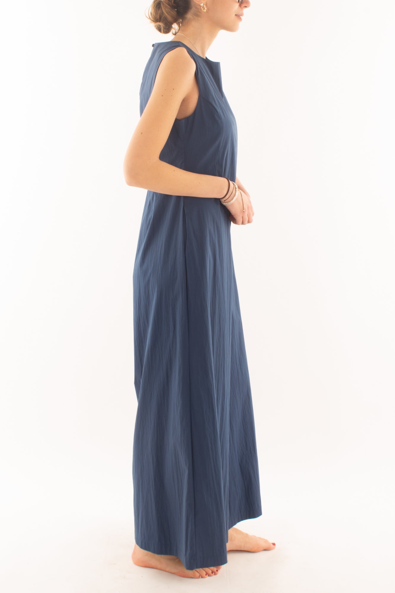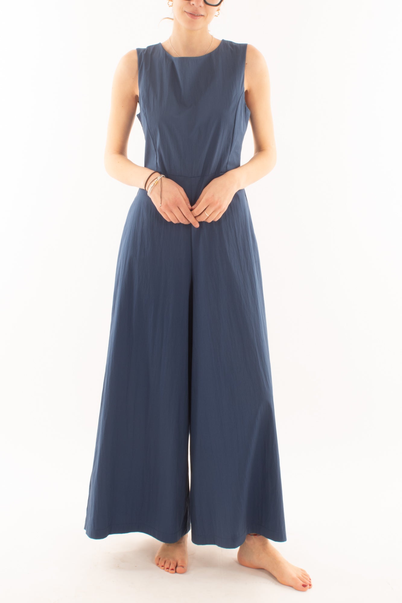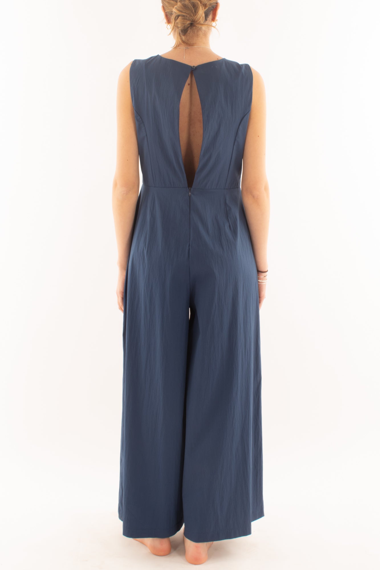 "Esplora la nostra tuta girocollo senza maniche, con pantalone a palazzo e una scollatura a goccia sulla schiena. Un mix di stile e comfort per un look sofisticato e senza sforzo.