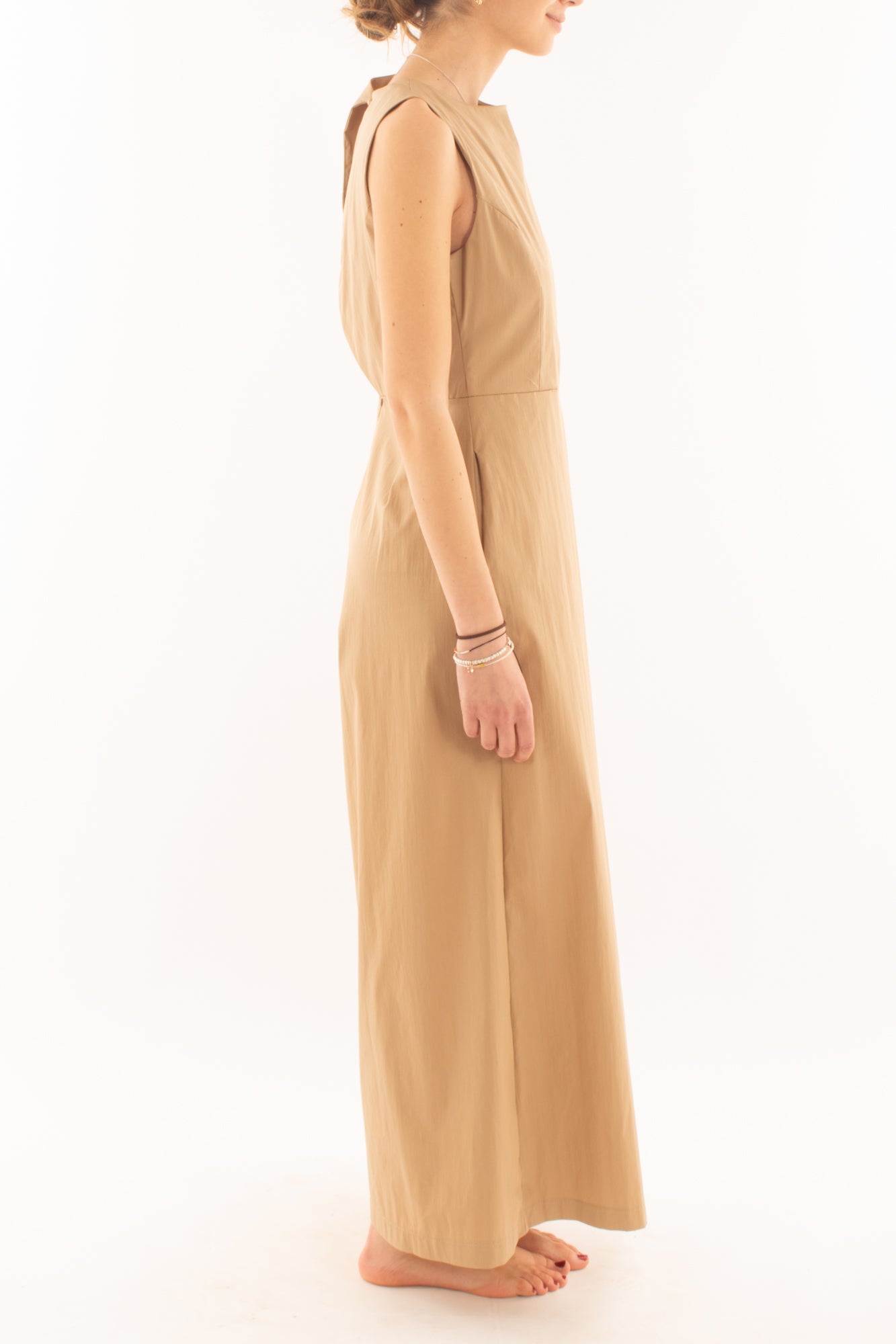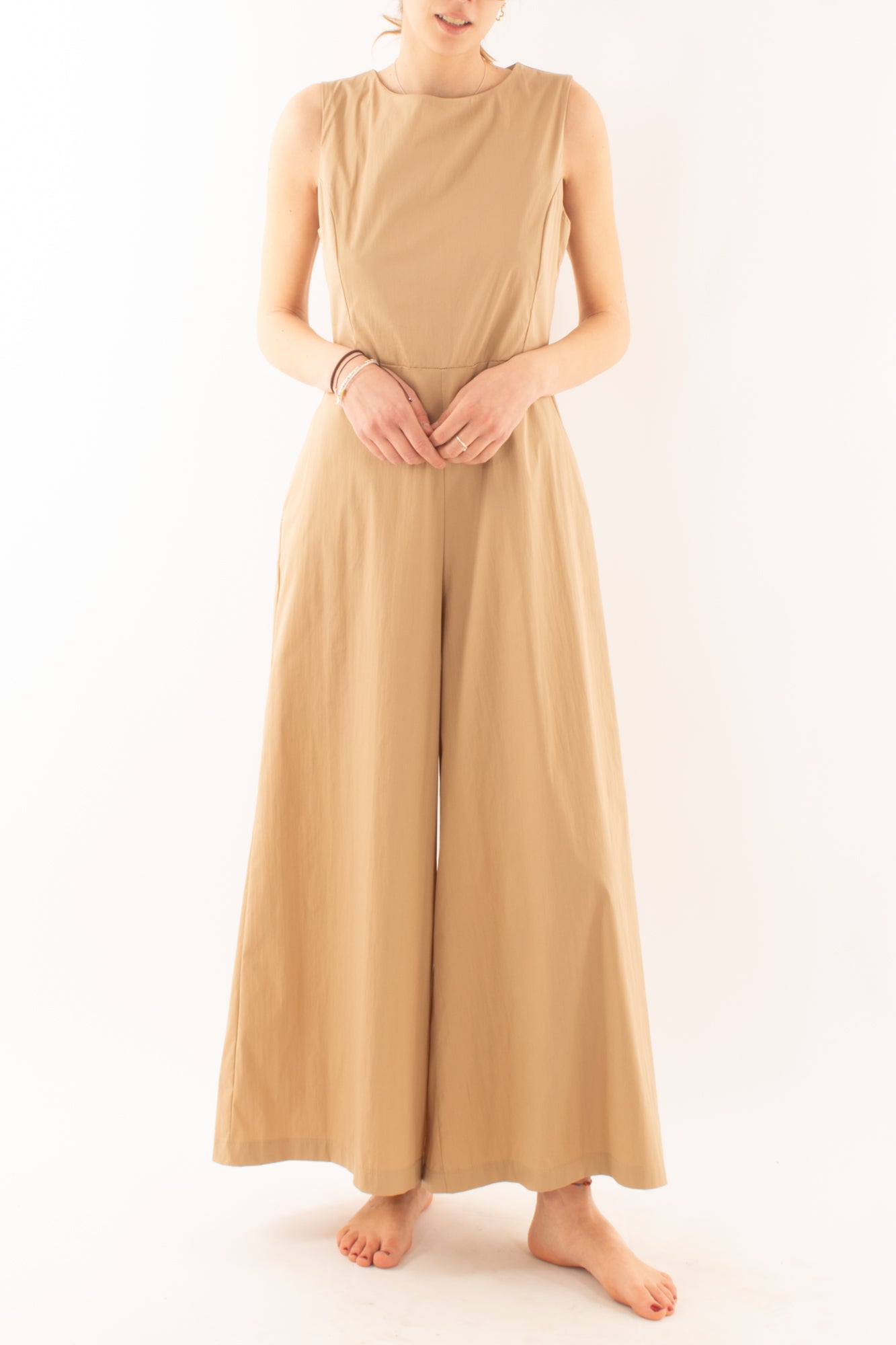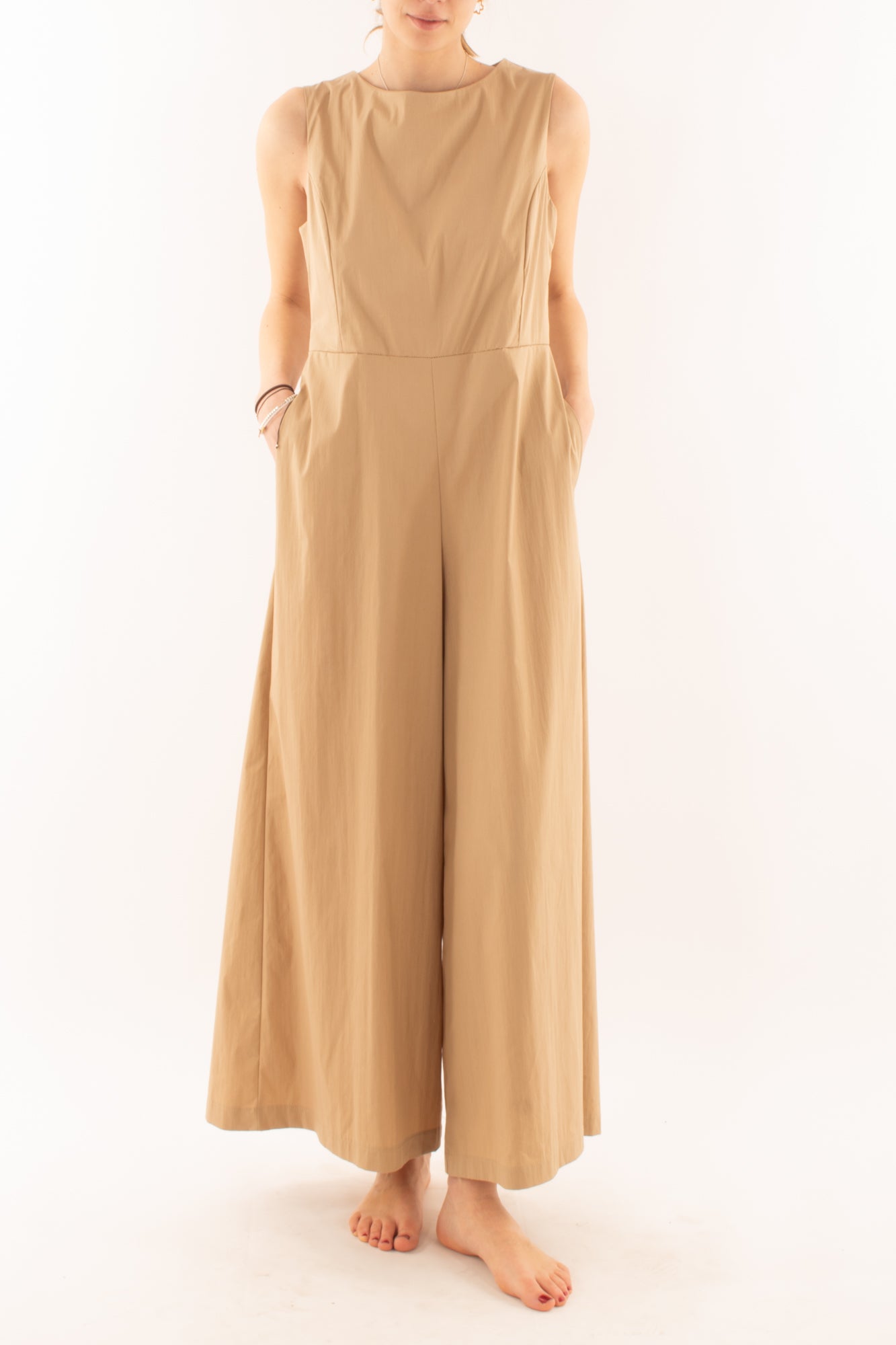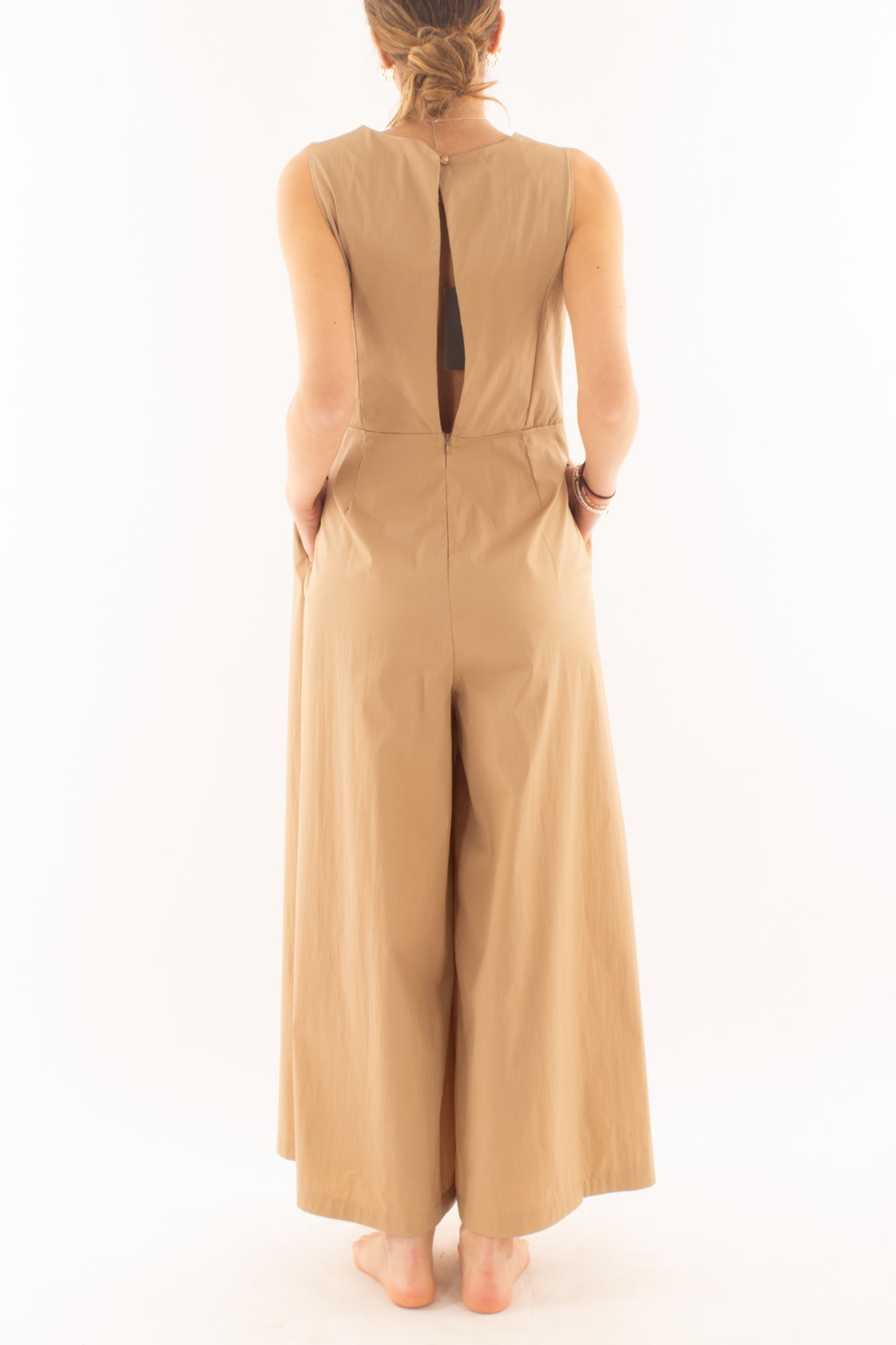 "Esplora la nostra tuta girocollo senza maniche, con pantalone a palazzo e una scollatura a goccia sulla schiena. Un mix di stile e comfort per un look sofisticato e senza sforzo.