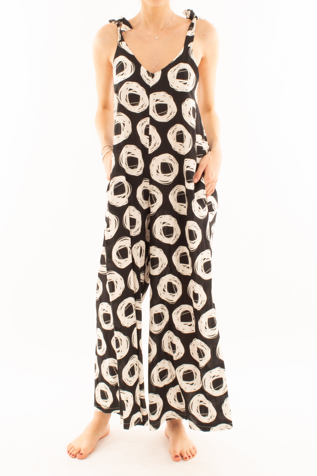 Scopri la nostra elegante tuta con bretellina allacciata e pantalone a palazzo, realizzata in viscosa di alta qualità. Questo capo versatile offre un look sofisticato e confortevole, ideale per ogni occasione, garantendo uno stile raffinato e moderno.