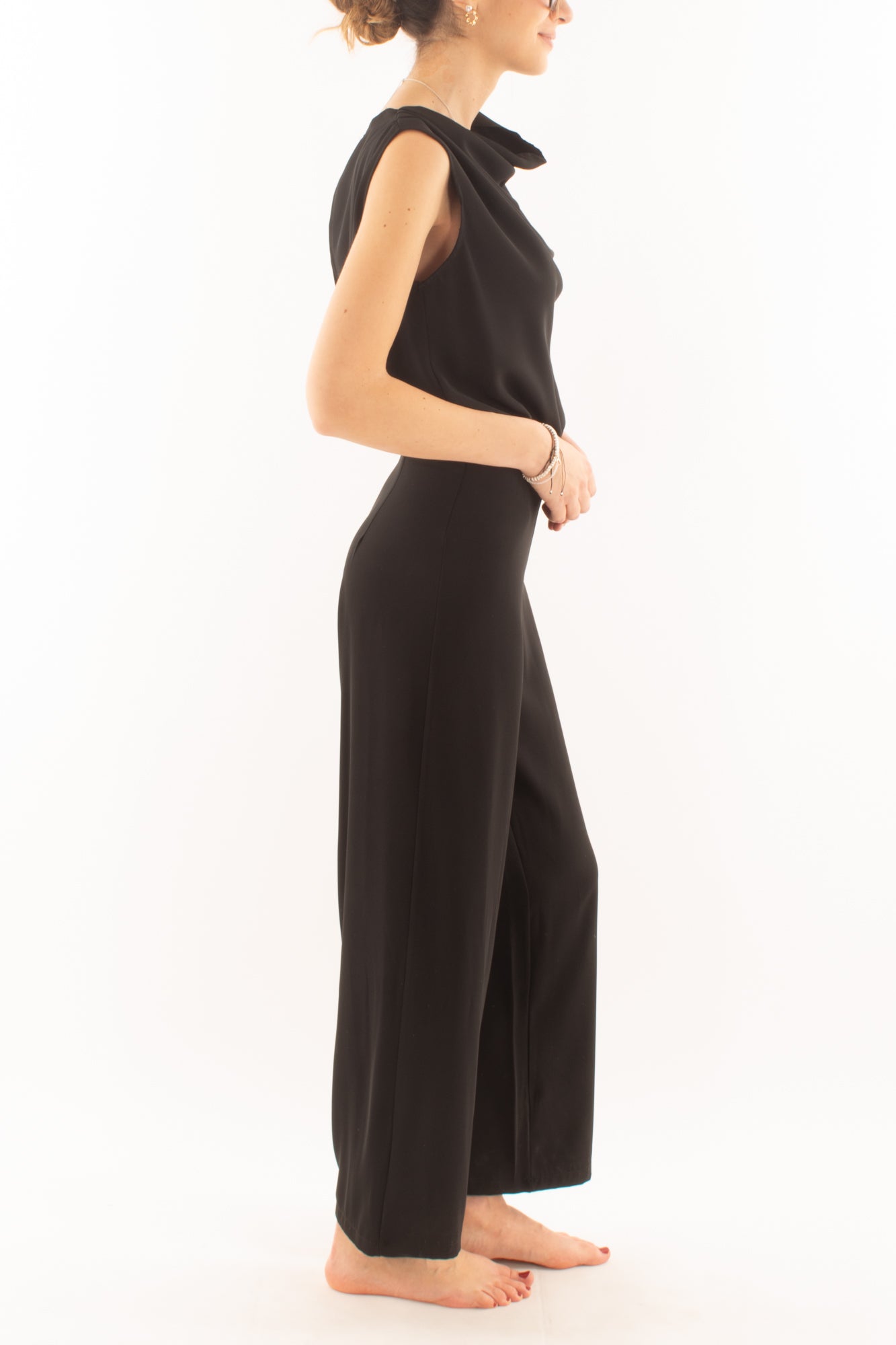 Elegante tuta smanicata ideale per eventi speciali. Realizzata con tessuti di alta qualità, offre comfort e stile. Il design moderno e raffinato valorizza la silhouette, rendendola perfetta per serate glamour e occasioni formali. Un capo immancabile nel guardaroba femminile.